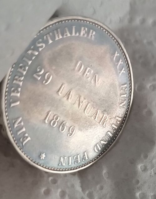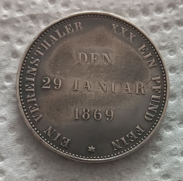 Саксония 1 союзный талер 1869 25 лет правления Герцога Эрнста II Тираж 6.000 РЕДКИЙ!
