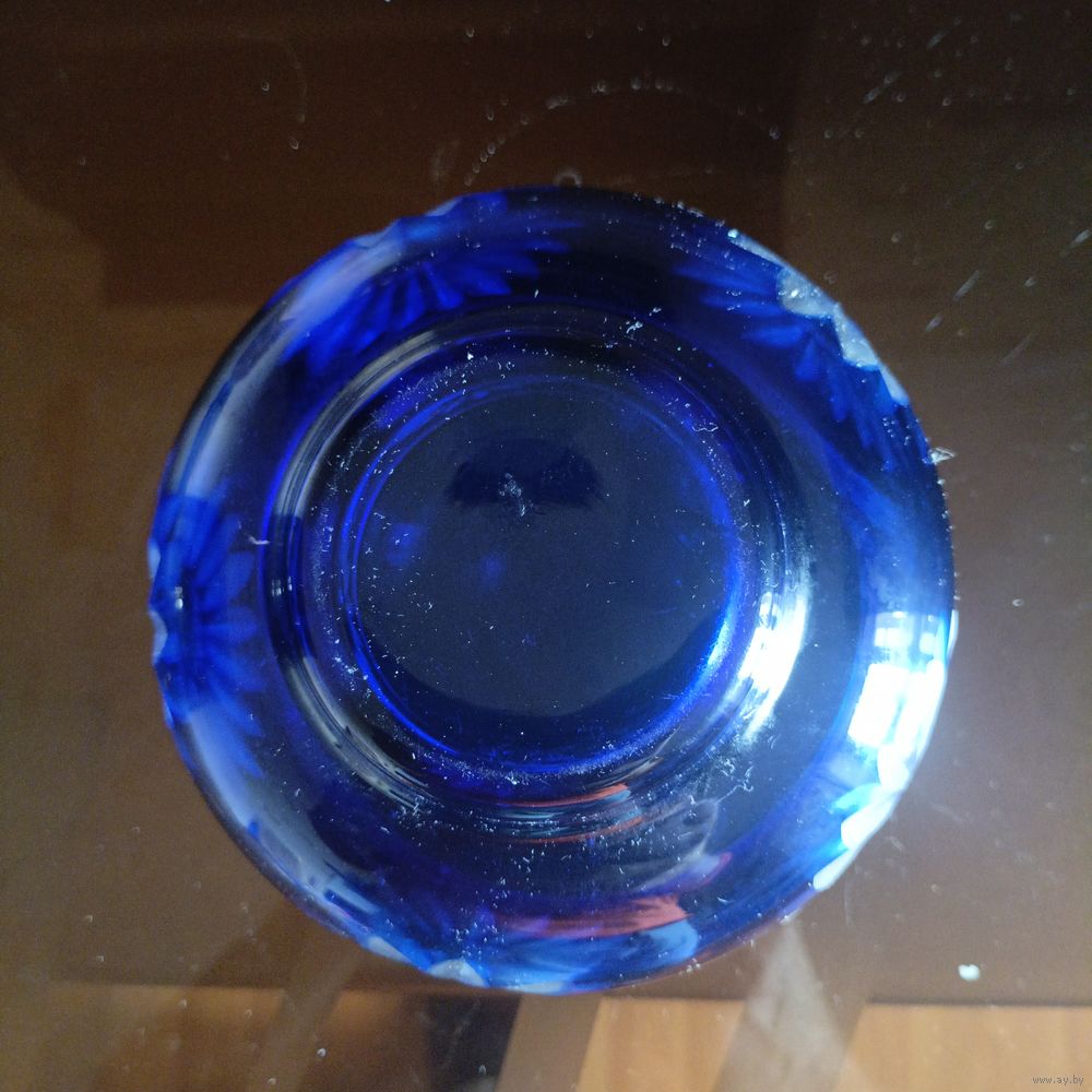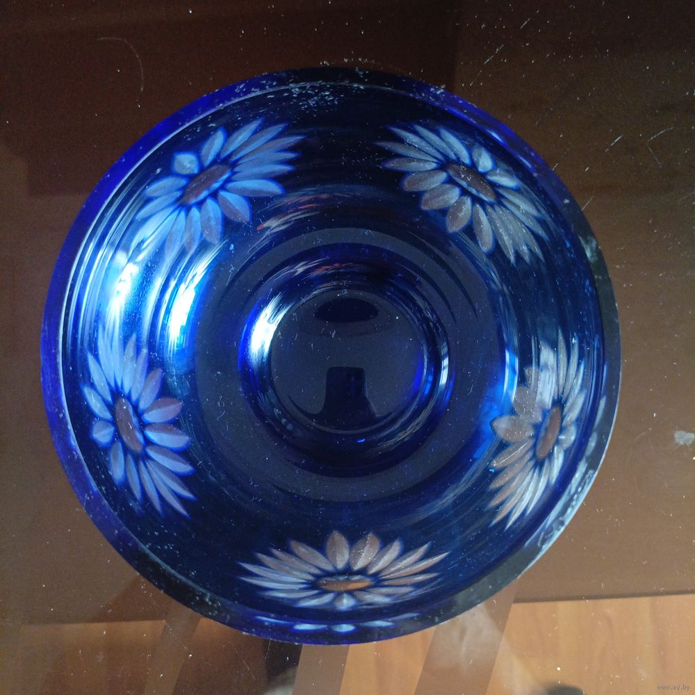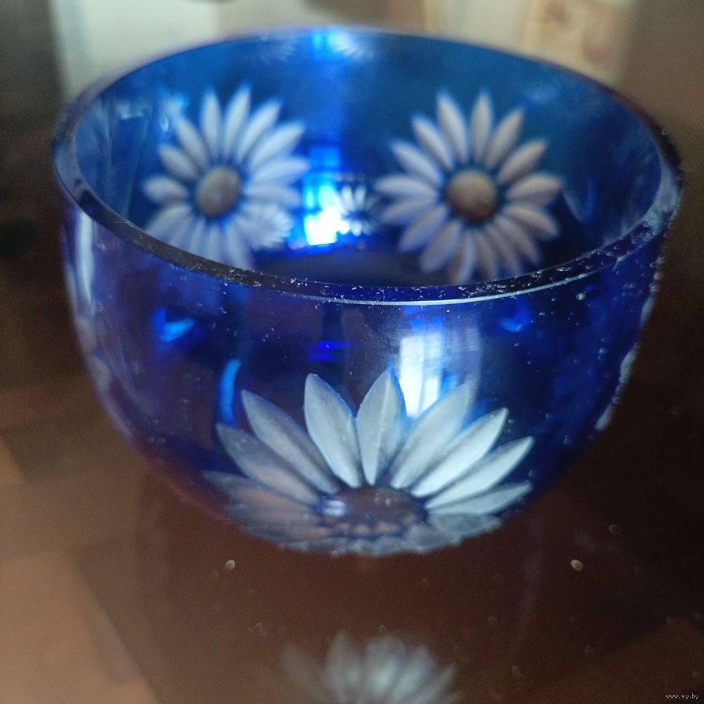 Салатник винтажный с цветочным декором Ромашка, хрусталь, кобальт, резьба, СССР, 1960-1980 гг.