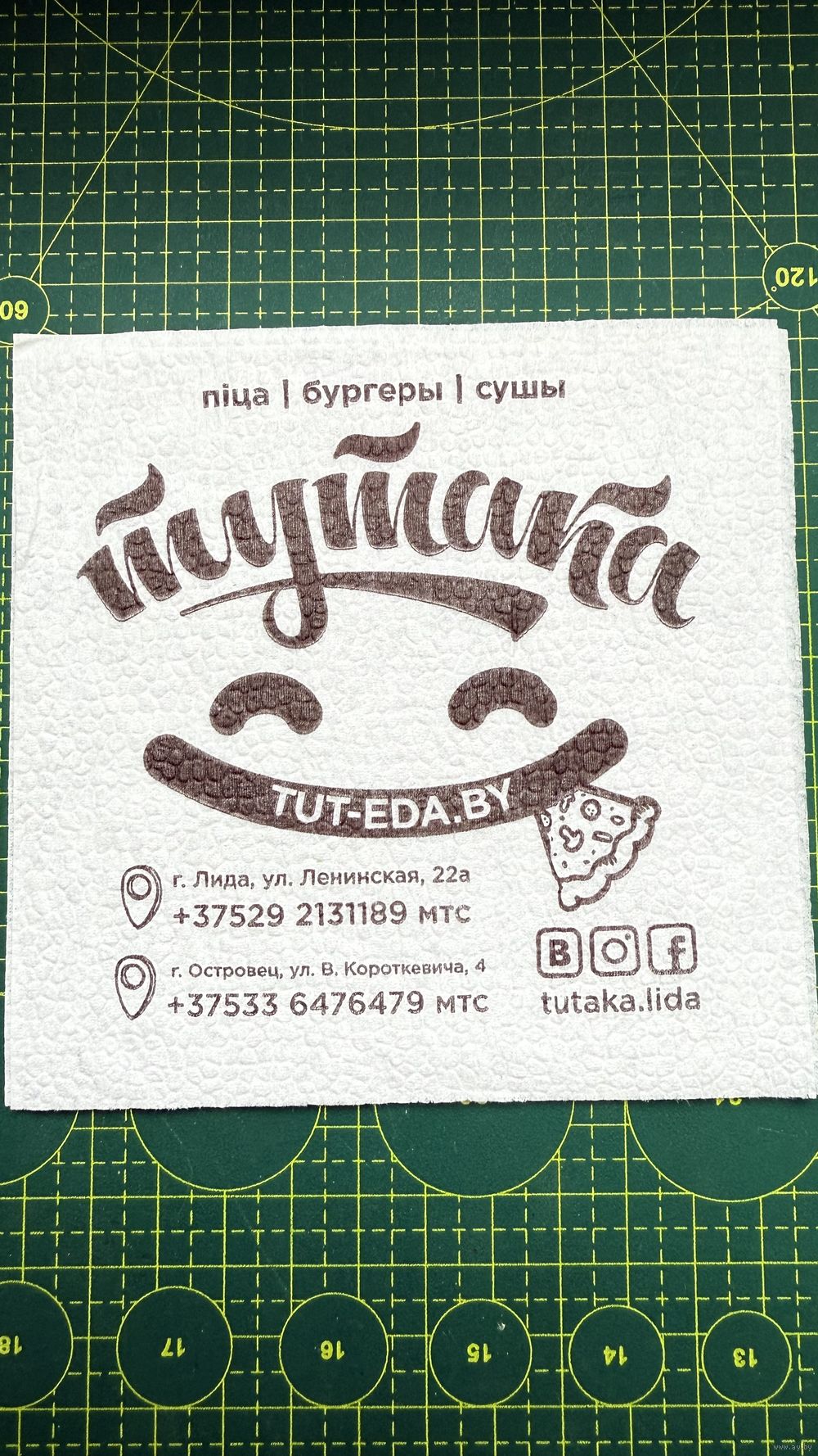 Салфетка, кафе Тутака, г. Лида