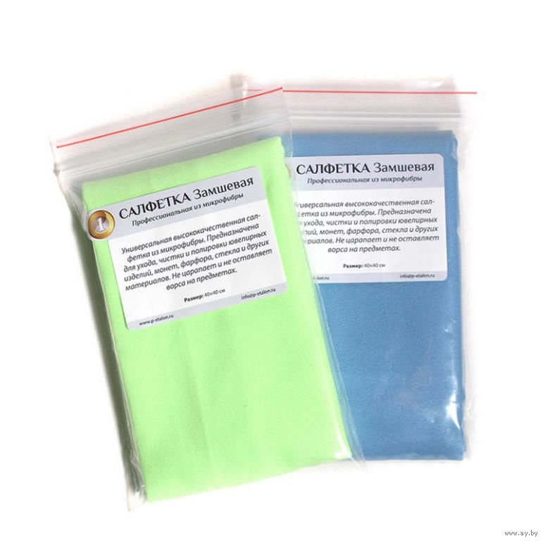 Универсальная высококачественная салфетка из микрофирмы. Предназначена для ухода , чистки и полировки ювелирных изделий, монет, фарфора, стекла и других материалов. Не царапает и не оставляет ворса на предметах 40х40 см.