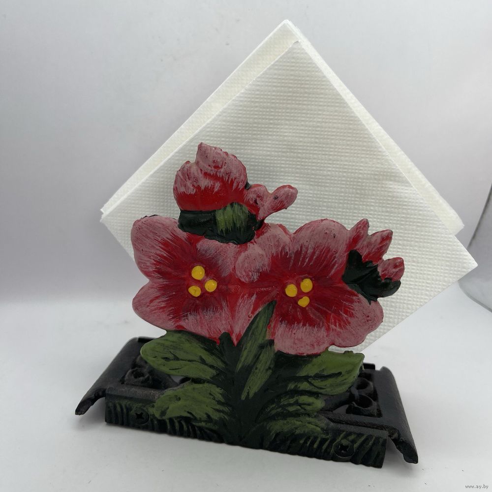 Винтажная чугунная салфетница с изящным прорезным узором на дне, декорирована рельефными цветами ручной росписи. Италия. 1980-е г.г. Размер 15 х 6 х 12,5 см. Состояние новой.