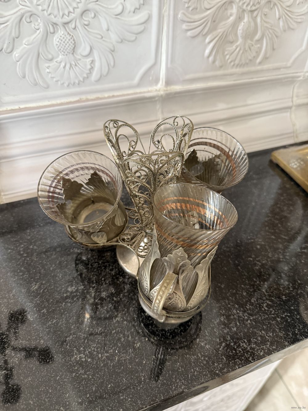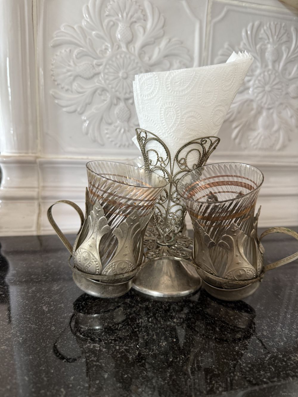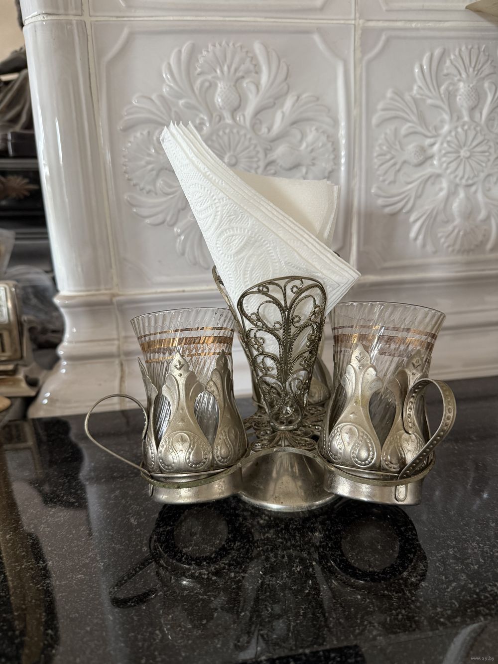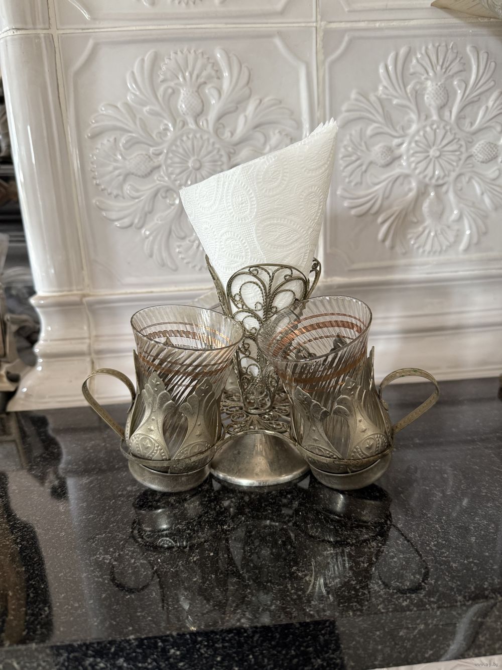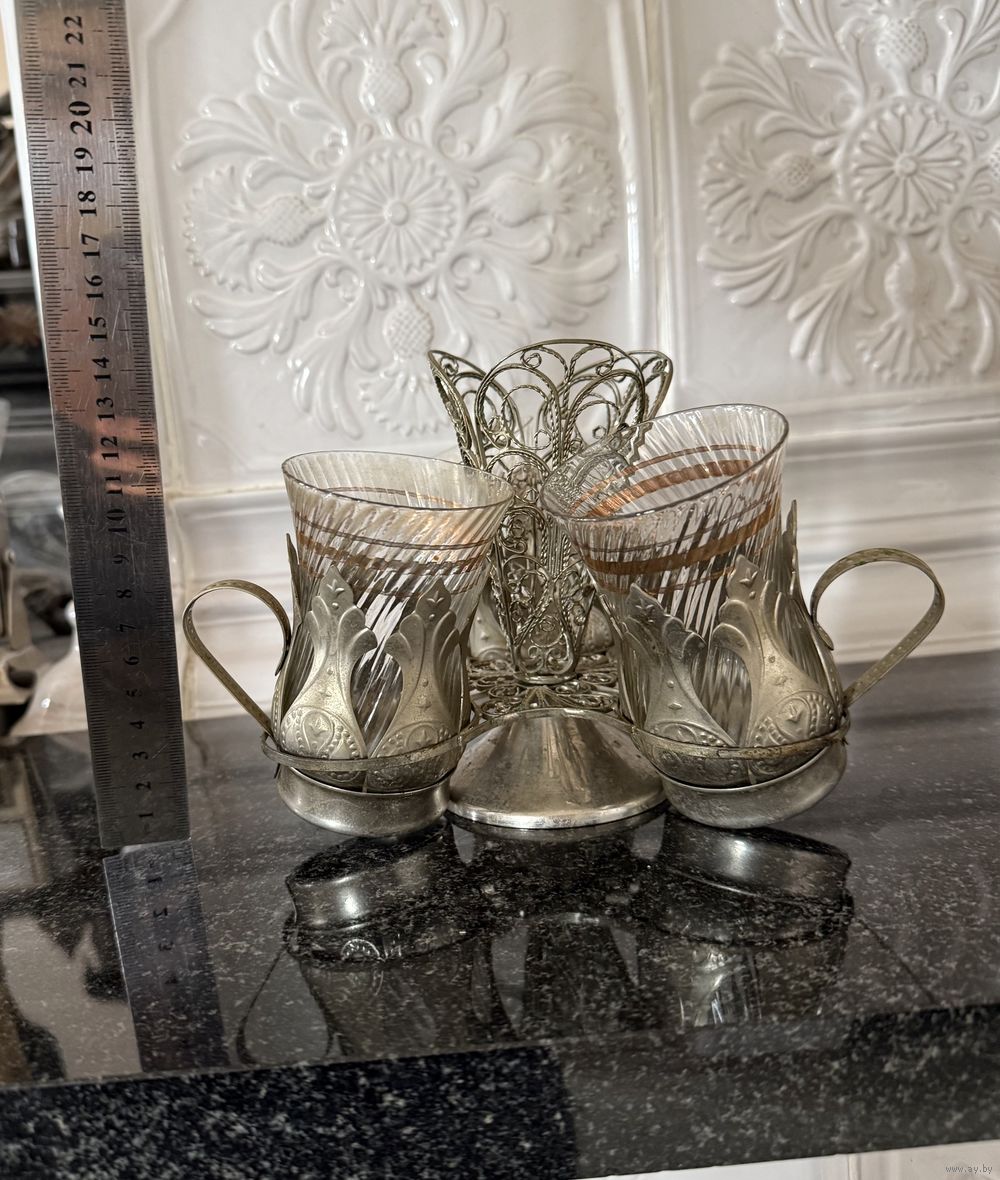 Салфетница с подстаканниками мельхиор СССР