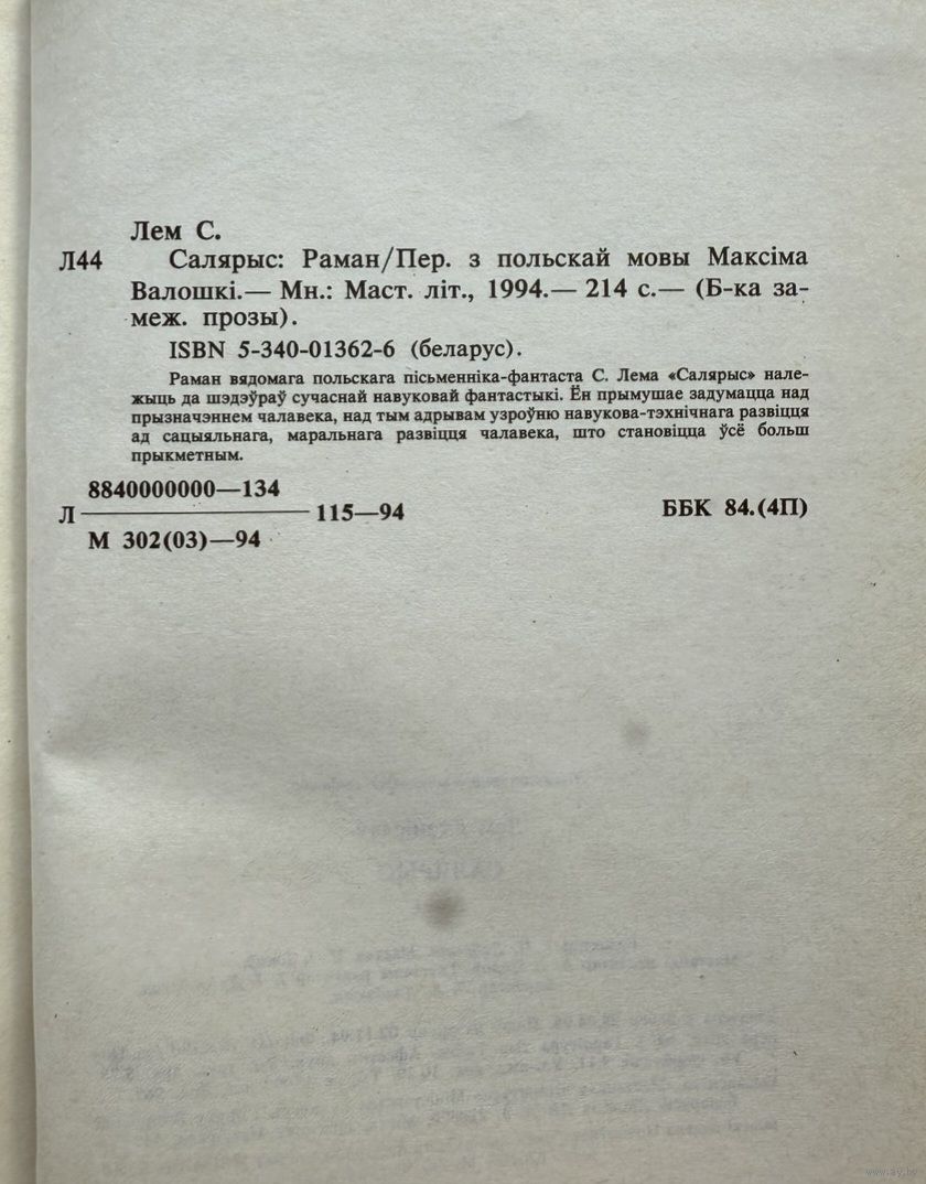 Салярыс Станіслаў Лем на першай і апошняй старонках некалькі шэрых плямаў. глядзіце фота