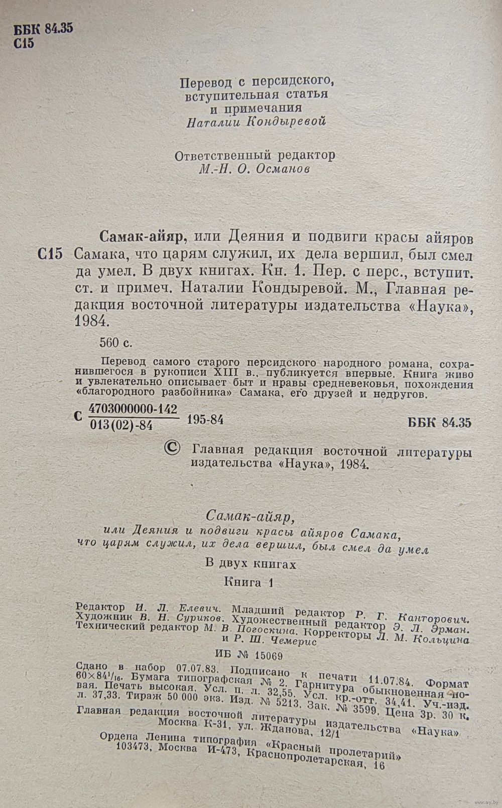 Перевод самого старого персидского народного романа, сохранившегося в рукописи XIII века. Книга живо и увлекательно описывает быт и нравы средневековья, похождения "благородного разбойника" Самака, его друзей и недругов.