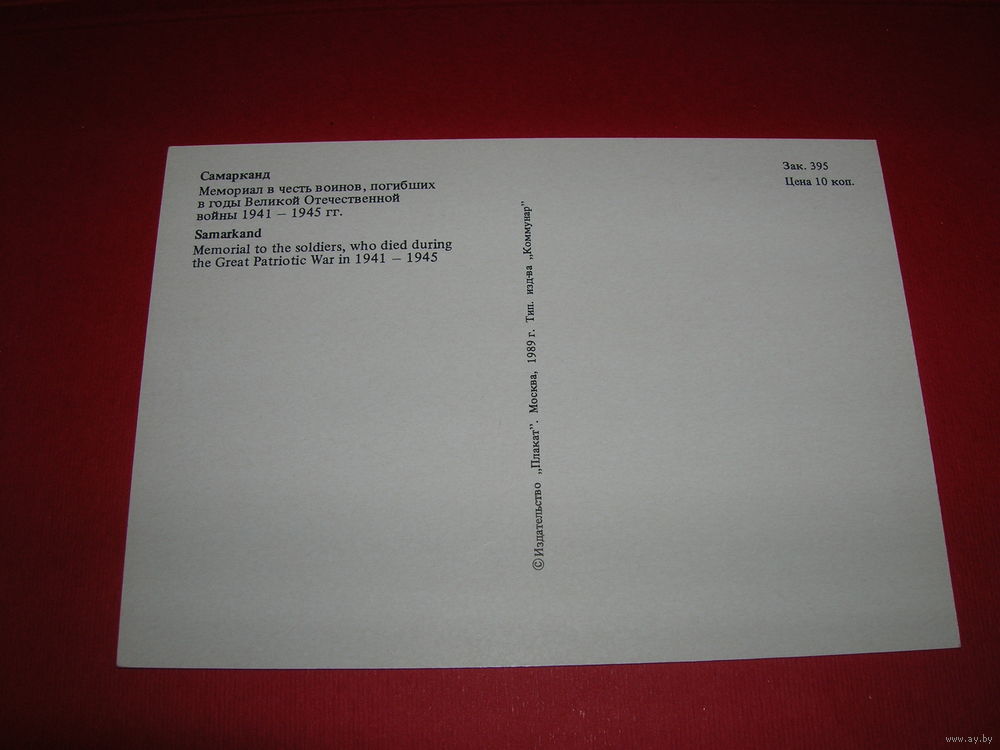 Самарканд Мемориал ВОВ 1989 год чистая