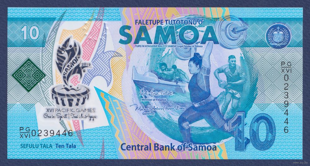 Самоа, 10 тала 2019 г, P-W45 (PG, полимер, памятная - XVI Тихоокеанские игры), UNC