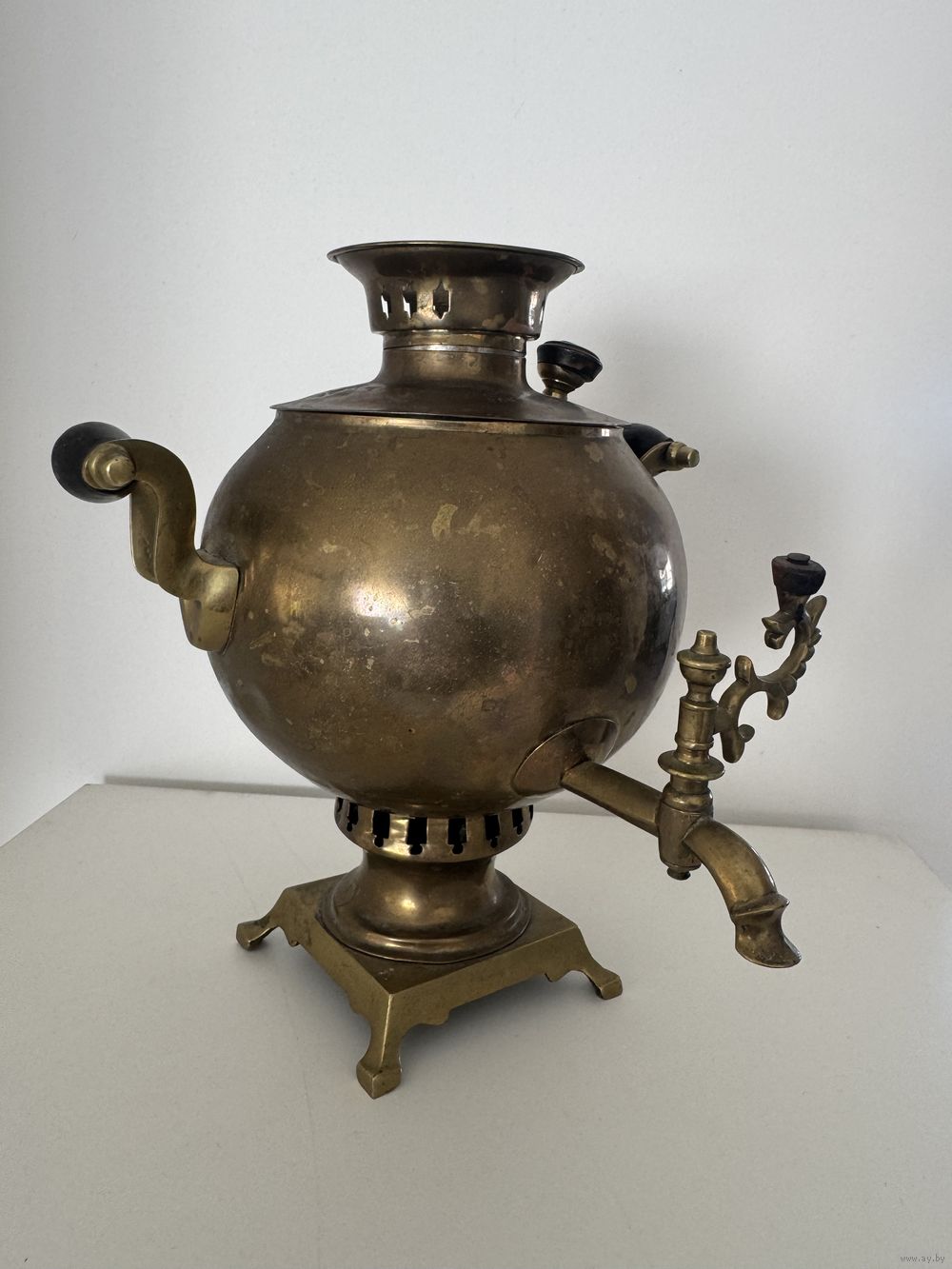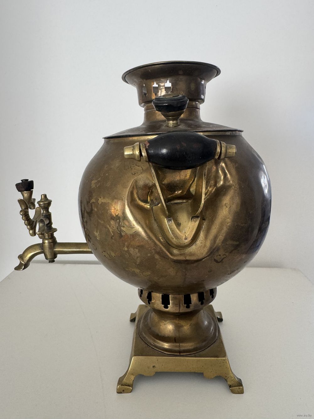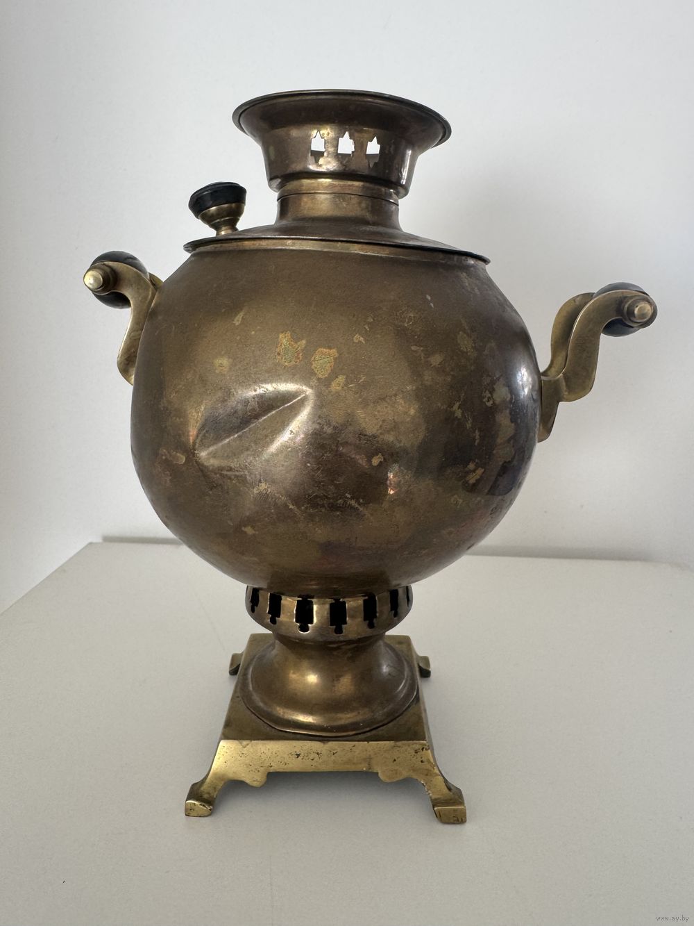 Самовар фабрики Григорий Романов, шар мини, латунь, высота 22 см, вес 800 гр, РЕДКИЙ!!!, требуется реставрация