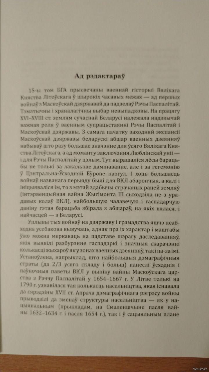 15-ты том БГА прысвечаны ваеннай гісторыі Вялікага Княства Літоўскага ў шырокіх часавых межах — ад першых войнаў з Маскоўскай дзяржавай да падзелаў Рэчы Паспалітай.