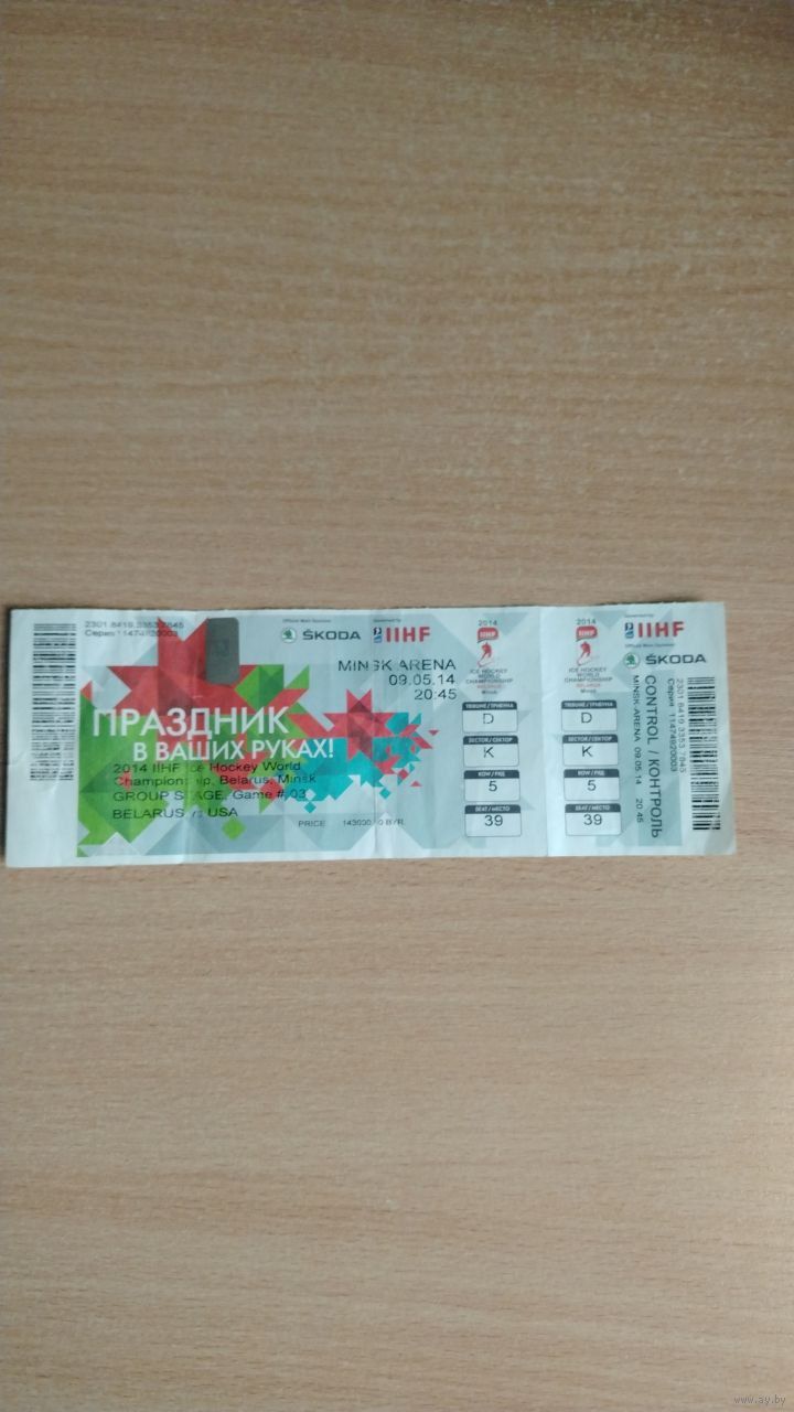 Самовывоз!!! Билет ЧМ по хоккею Минск, 2014. Беларусь - США . Почтой не высылаю.
