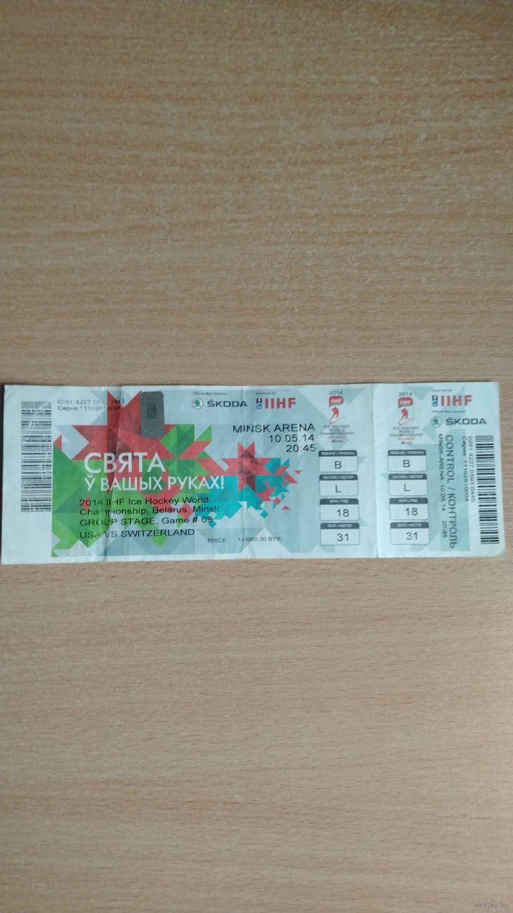 Самовывоз!!! Билет ЧМ по хоккею Минск, 2014. США - Швейцария. Почтой не высылаю.