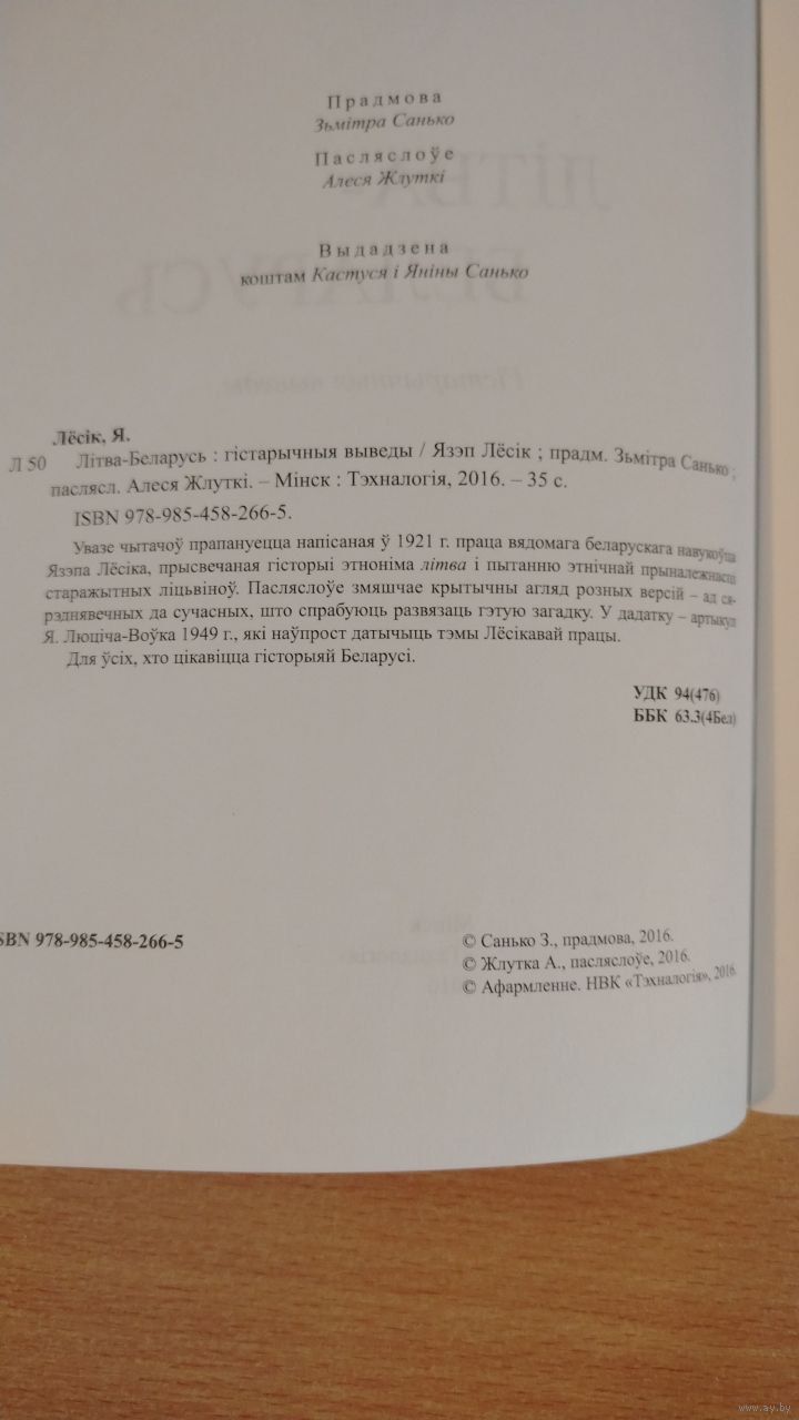 Для ўсіх, хто цікавіцца гісторыяй Беларусі. Літва-Беларусь : гістарычныя выведы / Язэп Лёсік ; прадмова Зьмітра Санько ; пасляслоўе Алеся Жлуткі. — 2016. – мяккая, 35 с.