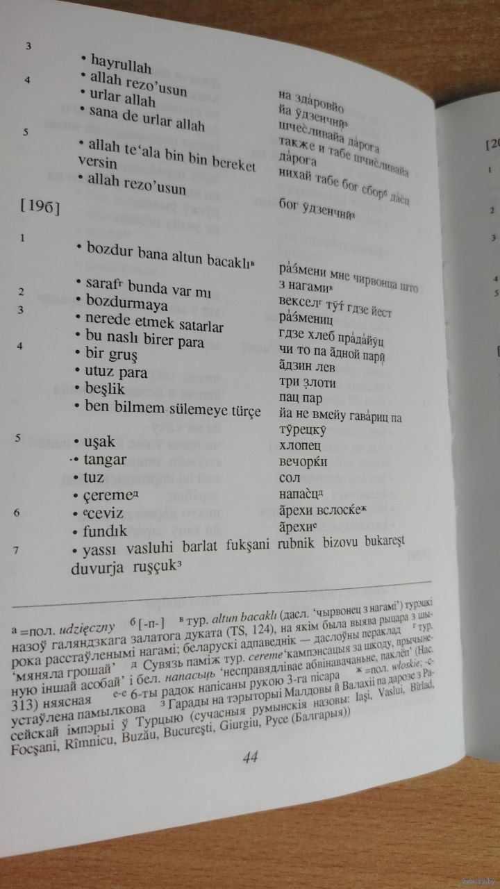 Турэцка-беларускі размоўнік 1836 году з збораў Нацыянальнага Музэю Літоўскай Рэспублікі ў Вільні Беларускі інстытут навукі і мастацтва. New York [Нью-Ёрк : б. в.], 1995 г. 62 c. Мяккая вокладка.
