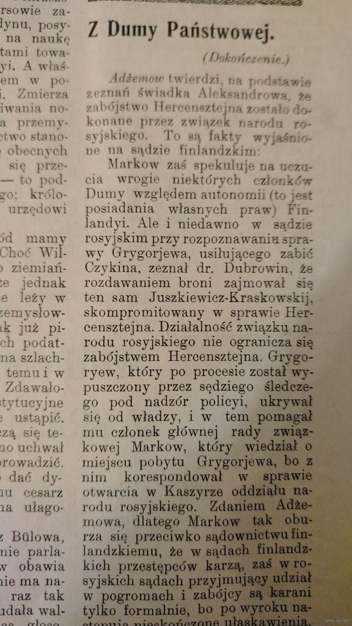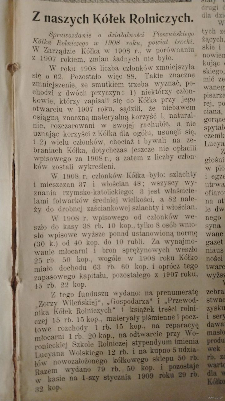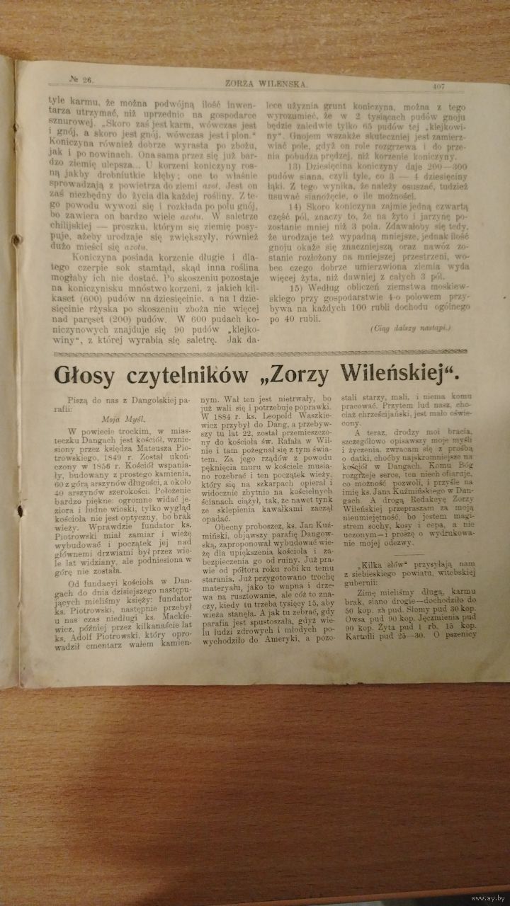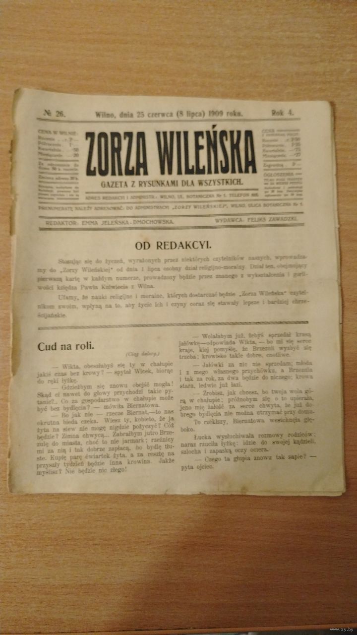 Самовывоз!!! RRR!!! Закрыта царскими властями в 1909 г. Еженедельная 16-стр. газета польской национальной демократии "Zorza wilenska" (Заря Вильна) N 26 25 июня 1909 г. Почтой не высылаю.