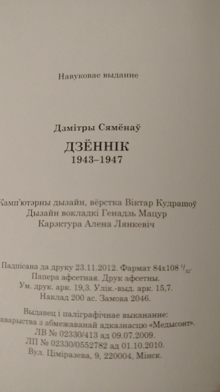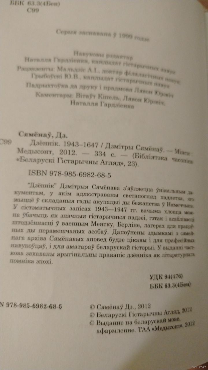 “Дзённік” Дзмітрыя Сямёнава — унікальны дакумент, у якім адлюстраваны светапогляд падлетка, яго жыццё ў складаныя гады акупацыі ды ўцякацтва ў Нямеччыне. У сістэматычных запісах 1943—1947 гг. вачыма хлопца можна ўбачыць як значныя гістарычныя падзеі, гэтак і асаблівасці штодзённасці ў ваенным Менску, Берліне, лагерах для працоўных ды перамешчаных асобаў. Дапоўнены здымкамі з сямейнага архіву Сямёнавых аповед будзе цікавы і для прафесійных навукоўцаў, і для аматараў беларускай гісторыі. У выданні часткова захаваны арыгінальны правапіс дзённіка як літаратурнага помніка эпохі.