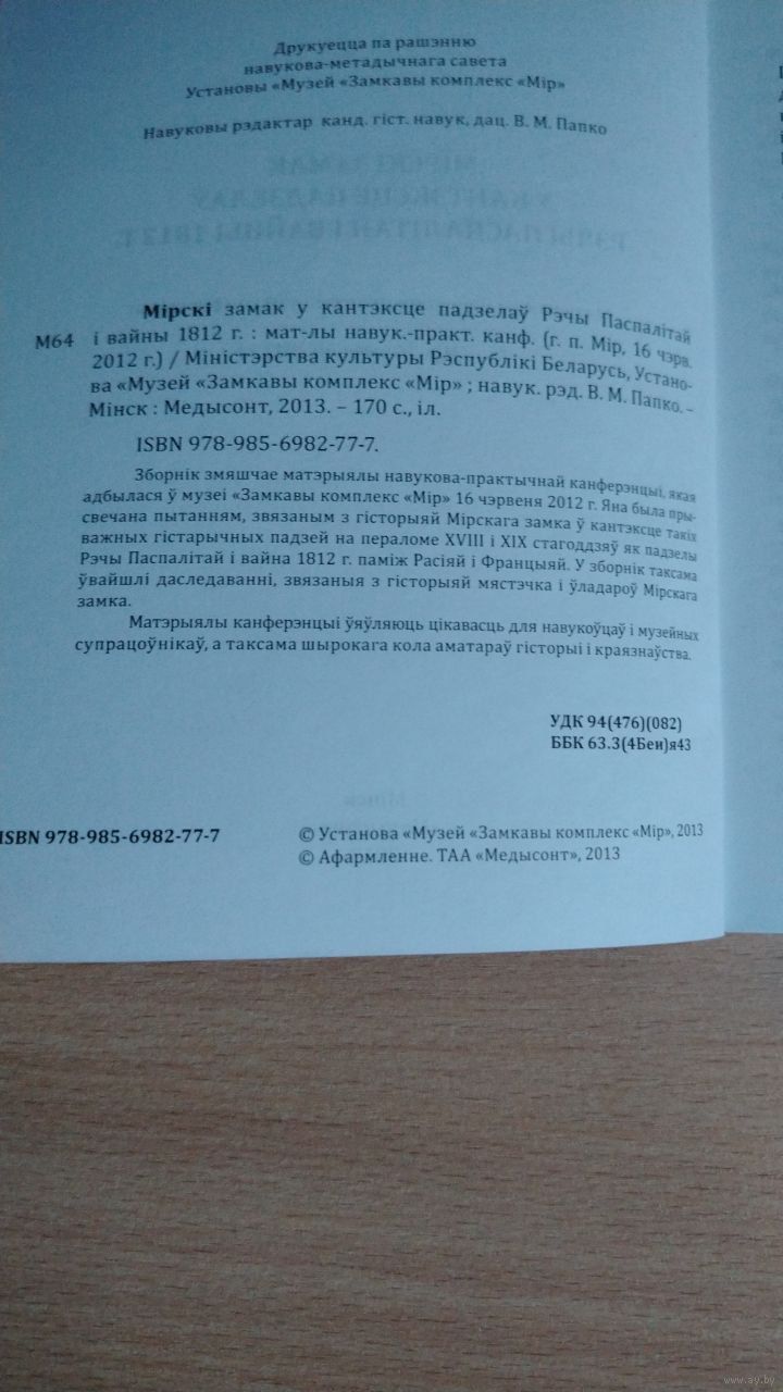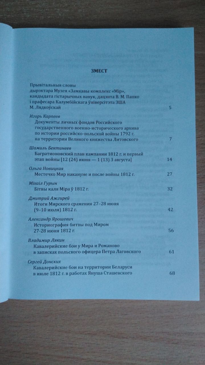 Самовывоз!!! Значительная часть артикулов на русском языке. Мiрскi замак у кантэксце падзелау Рэчы Паспалiтай i вайны 1812 г. Наклад 200 асоб. Почтой не высылаю.