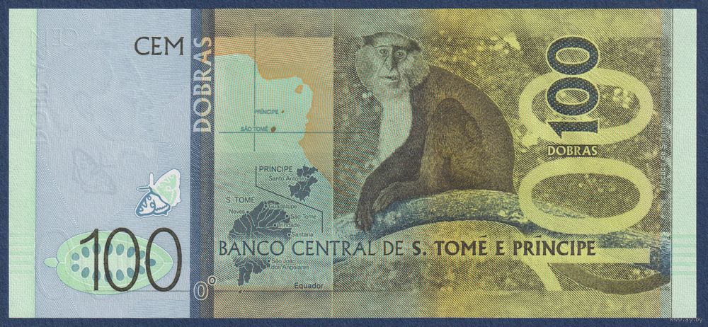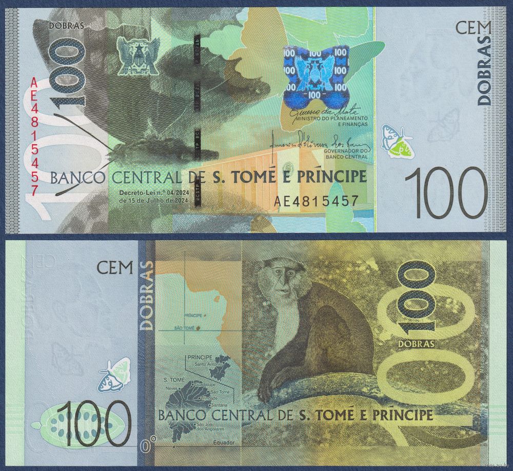 Сан-Томе и Принсипи, 100 добра 2024 г, P-74 (AE, бабочка Одиссей, обезьяна), UNC