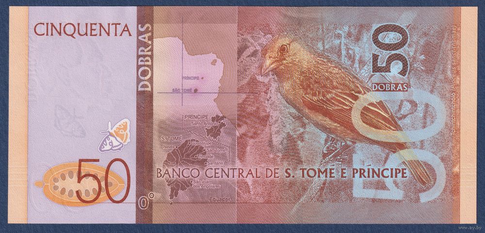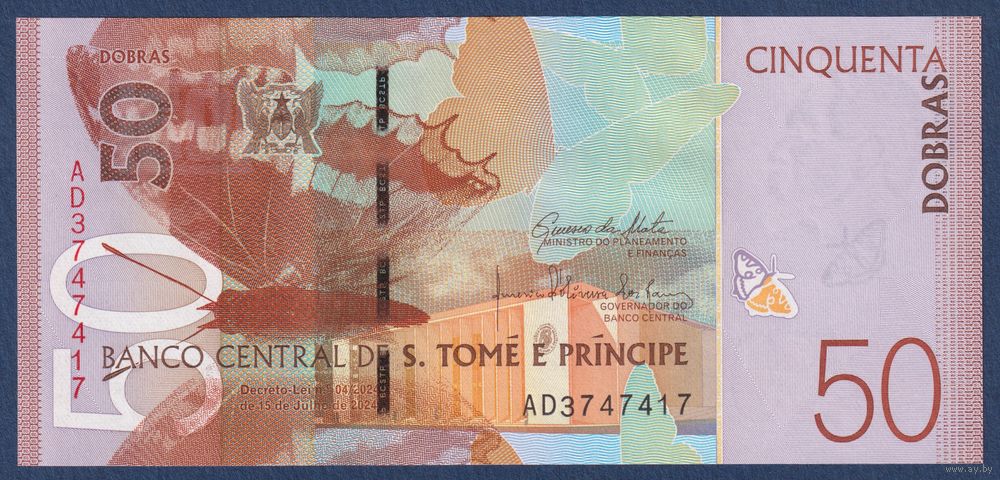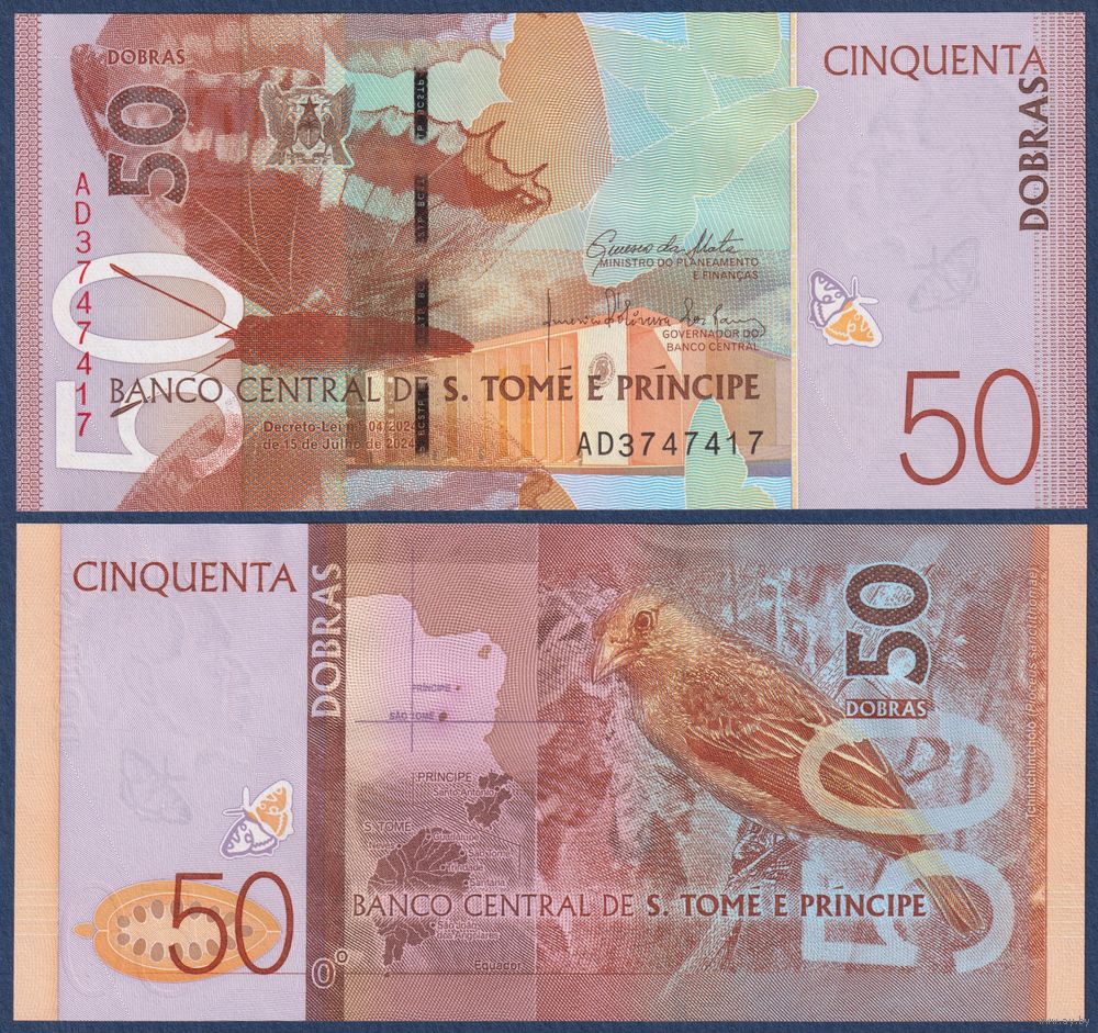 Сан-Томе и Принсипи, 50 добра 2024 г, P-73 (AD, бабочка, птица ткачик), UNC