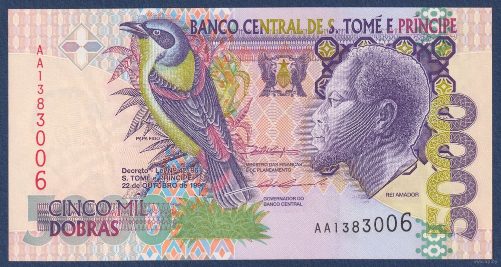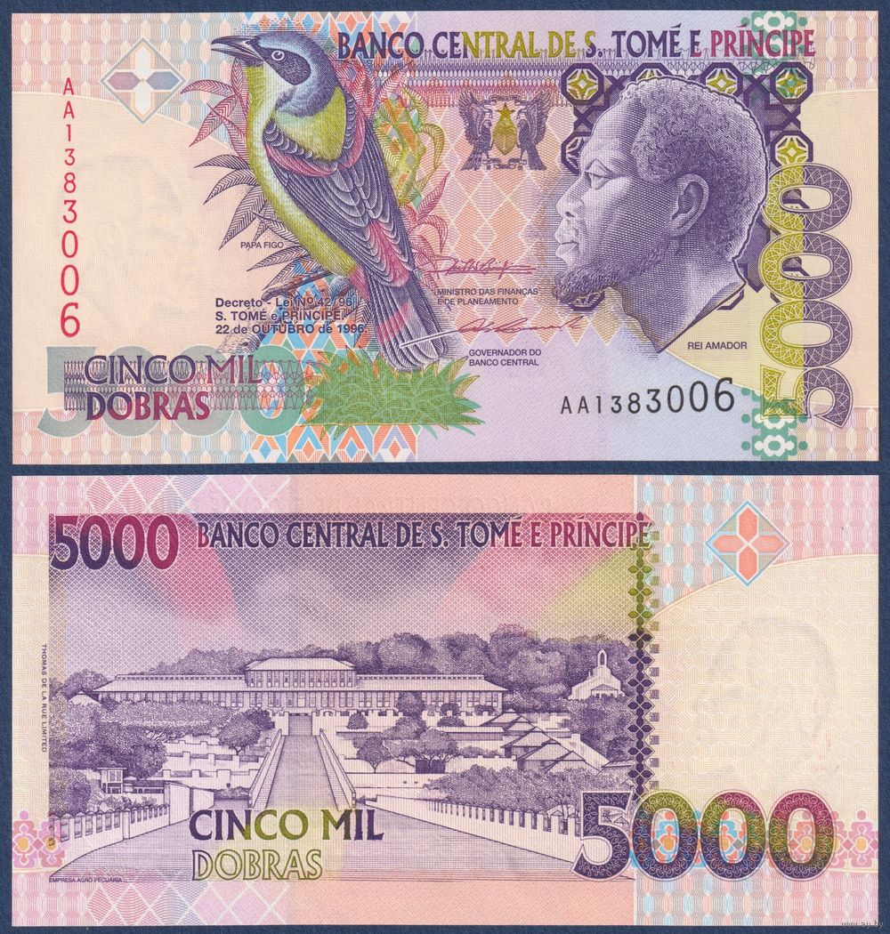 Сан-Томе и Принсипи, 5000 добра 1996г, P-65a (АА, птица Папа Фигу, Рей Амадор), UNC