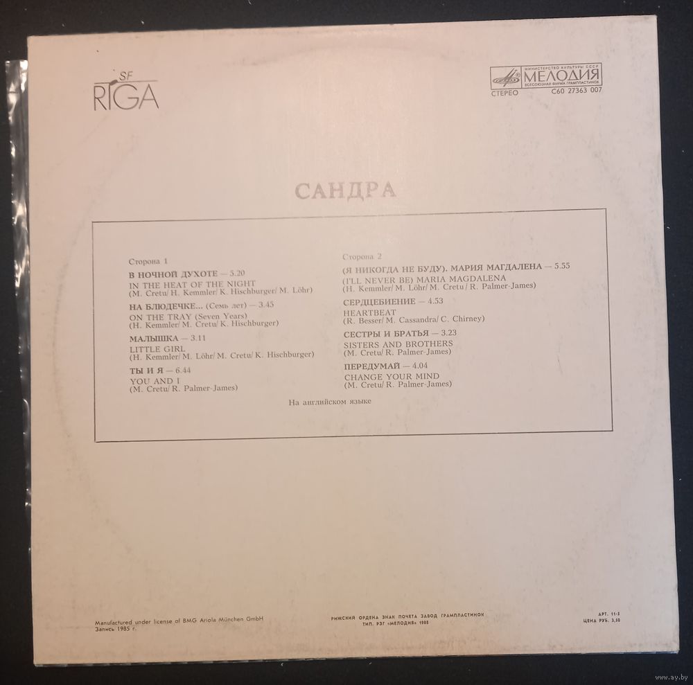 Исполнитель | Сандра |