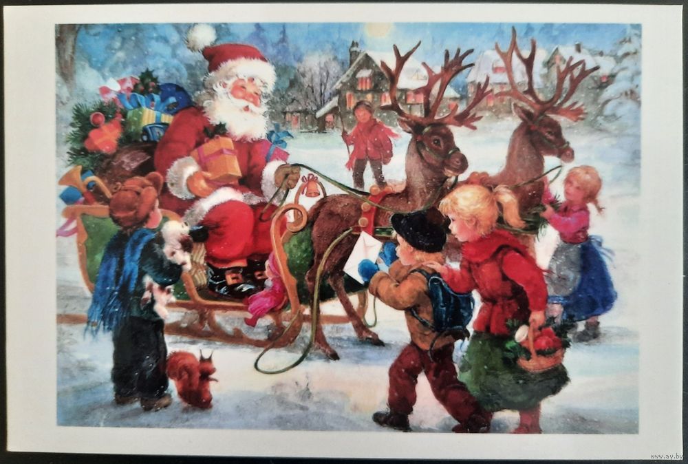 Санта Клаус и Рождественские олени. Россия.