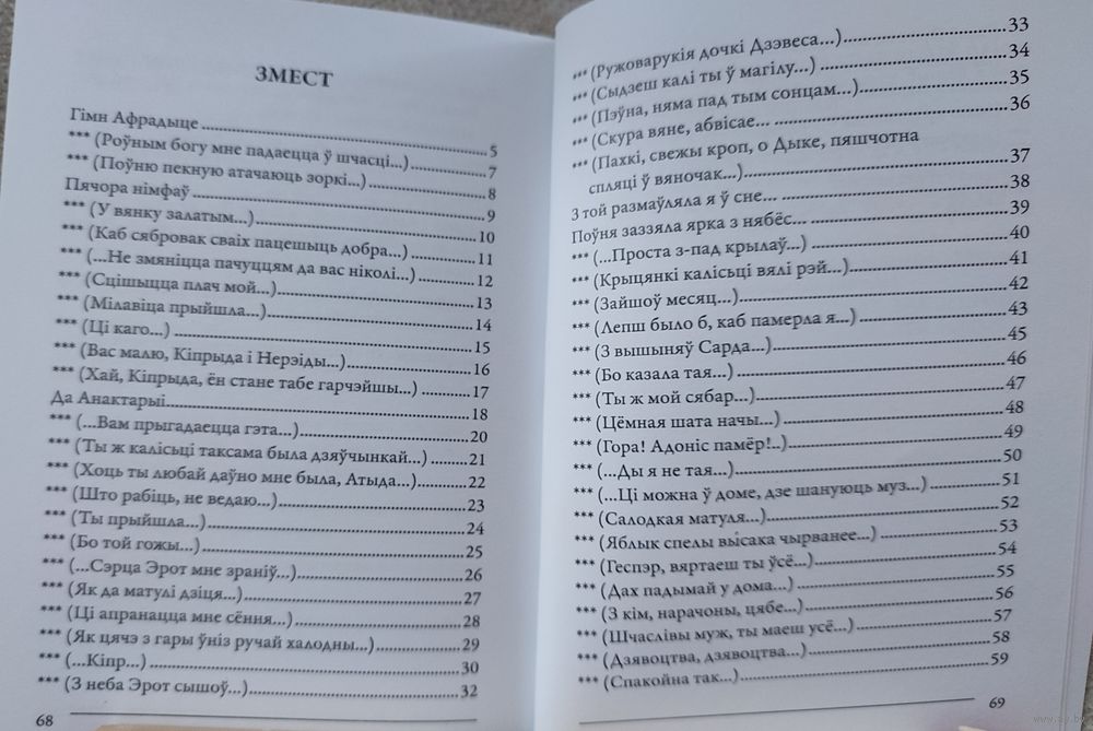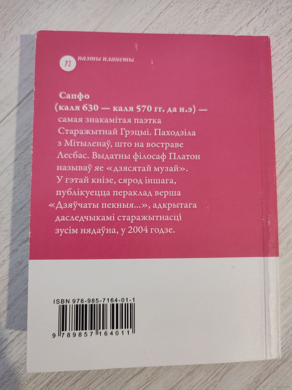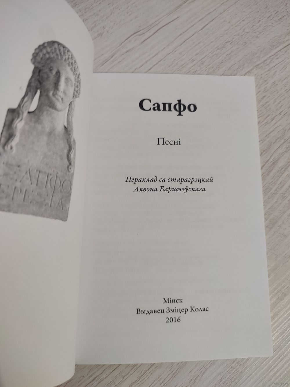 Сапфо (каля 630 – каля 570 гг. да н. э.) – самая знакамітая паэтка Старажытнай Грэцыі. Паходзіла з Мітыленаў, што на востраве Лесбас. Выдатны філосаф Платон называў яе "дзясятай музай". У гэтай кнізе, сярод іншага, публікуецца пераклад верша "Дзяўчаты пекныя", адкрытага даследчыкамі старажытнасці зусім нядаўна, у 2004 годзе.