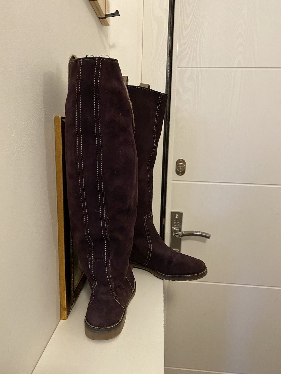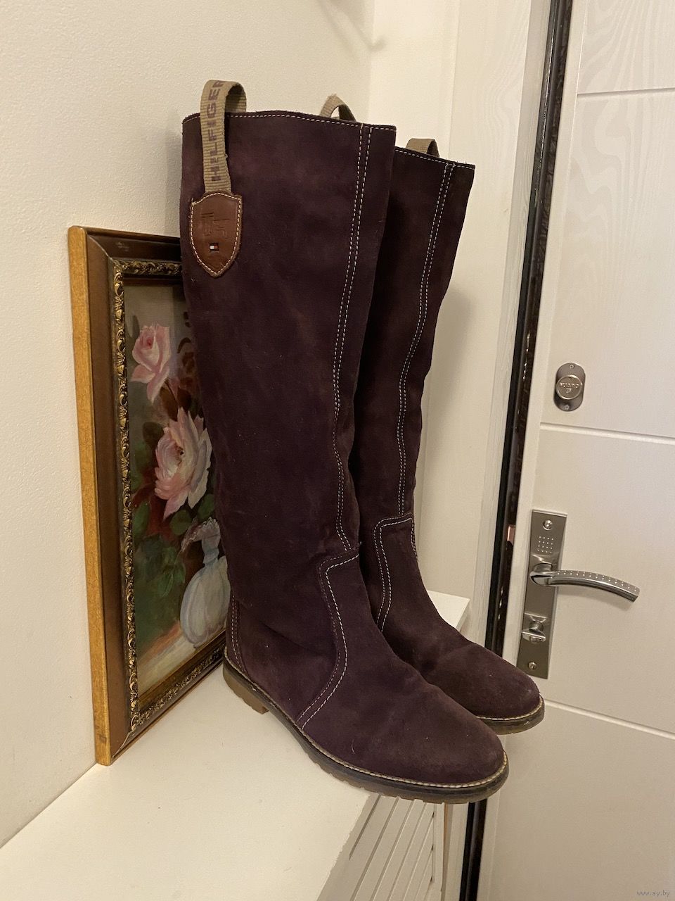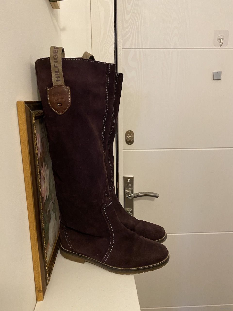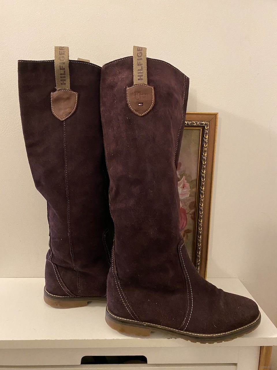 Сапоги Tommy Hilfiger натуральная замша на размер 36-36,5, на узкую ногу. Цвет темно-фиолетовый, с коричневым подтоном, очень красивый цвет. Демисезонные. Смотрите также другие мои лоты.