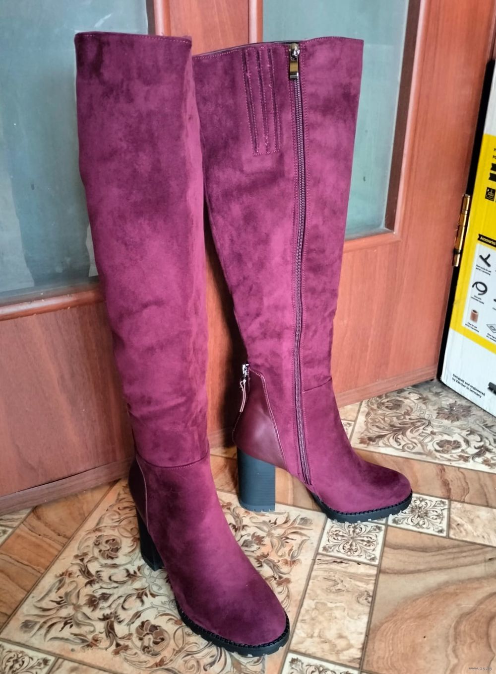 Демисезонные женские замшевые сапоги новые р.37,на молнии,с подкладкой из цигейки,цвет бордовый,каблук-9 см,высота сапог с каблуком-52 см,объём голенища-36 см,на среднюю ногу.Причина продажи-не подошел размер.Территориально ул.Комарова,на смс не отвечаю,все вопросы только по телефону.