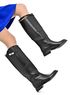Деми сапоги трубы из экокожи чуть ниже колена на низком устойчивом каблуке 3,5см, подошва 1,5см без молнии. Классическая модель сапог с ремешком и пряжкой на голенище подойдет под множество самых модных женственных образов будущей весны. Высокое голенище труба из экокожи, благодаря чему обувь легко одевается. Антискользящая подошва и анатомическая колодка подарят дополнительный комфорт при ходьбе на длительные расстояния. Фурнитура выполнена под серебро, подклад и стелька из экокожи. Сапоги куплены за 185руб., обуты 1 раз на корпоратив, продаю, т.к. немного жмут на косточку на ноге. Состояние новых, дефектов нет.