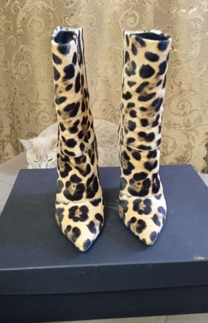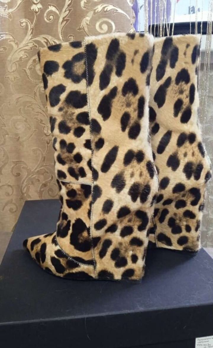Сапоги женские. Новые. Италия. Р/р: 36. Верх - мех пони, окрашенный под леопарда, подкладка и стелька натуральная кожа, скрытый каблук 11 см. Ширина голенища по окату 25 см, высота голенища 17,5 см.