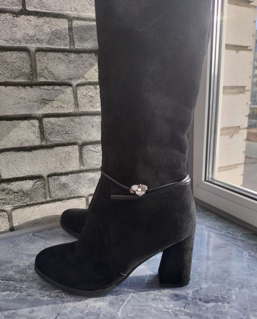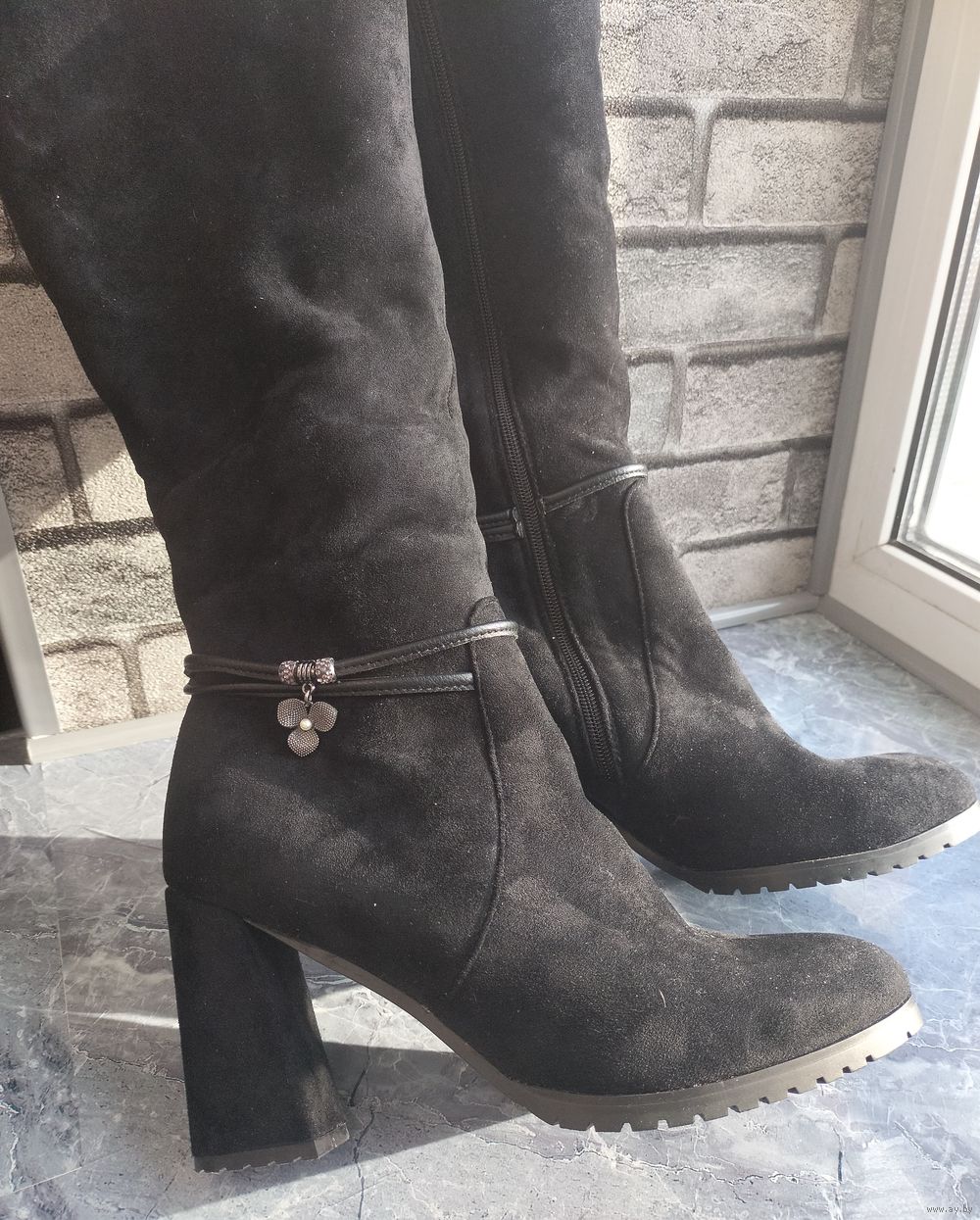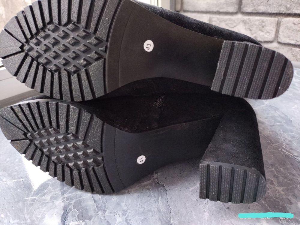 Новые женские замшевые сапоги на меху р.41,на молнии,цвет чёрный,каблук-9 см,высота сапог с каблуком-46 см,объём голенища-38 см,толстый искусственный мех.Причина продажи-не подошел размер,без коробки.На смс не отвечаю,все вопросы только по телефону,самовывоз ул.Рокоссовского.