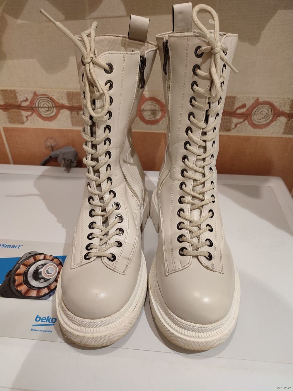 Продаются сапоги женские зимние 37 размер, кремовые. Резиновая подошва. На замках и шнуровке.