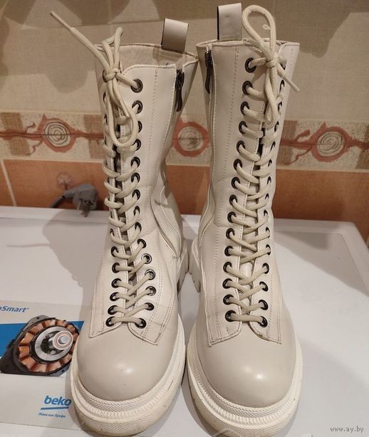 Продаются сапоги женские зимние 37 размер, кремовые. Резиновая подошва. На замках и шнуровке.