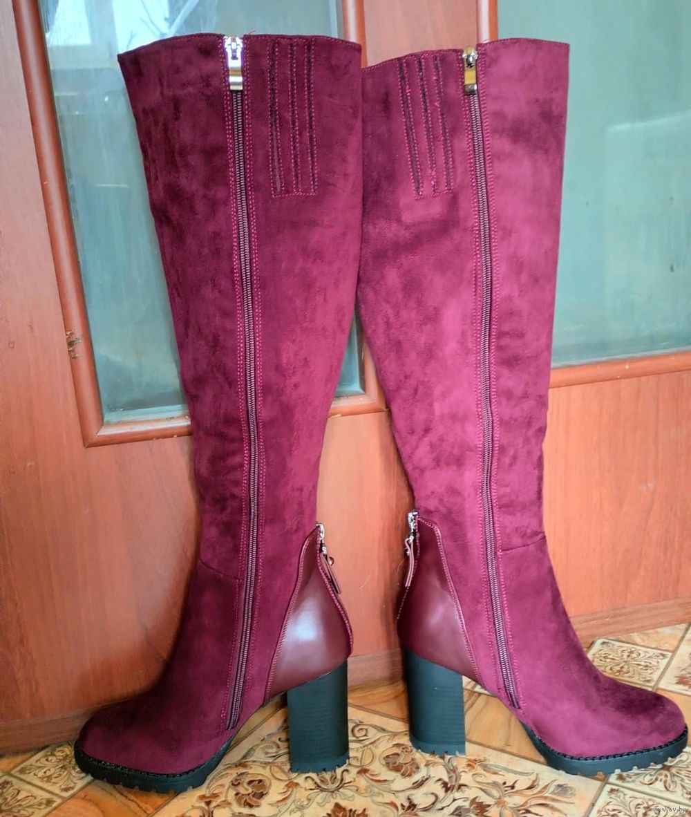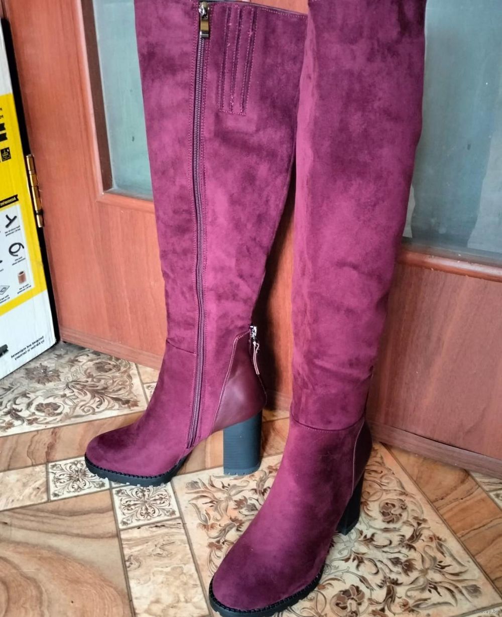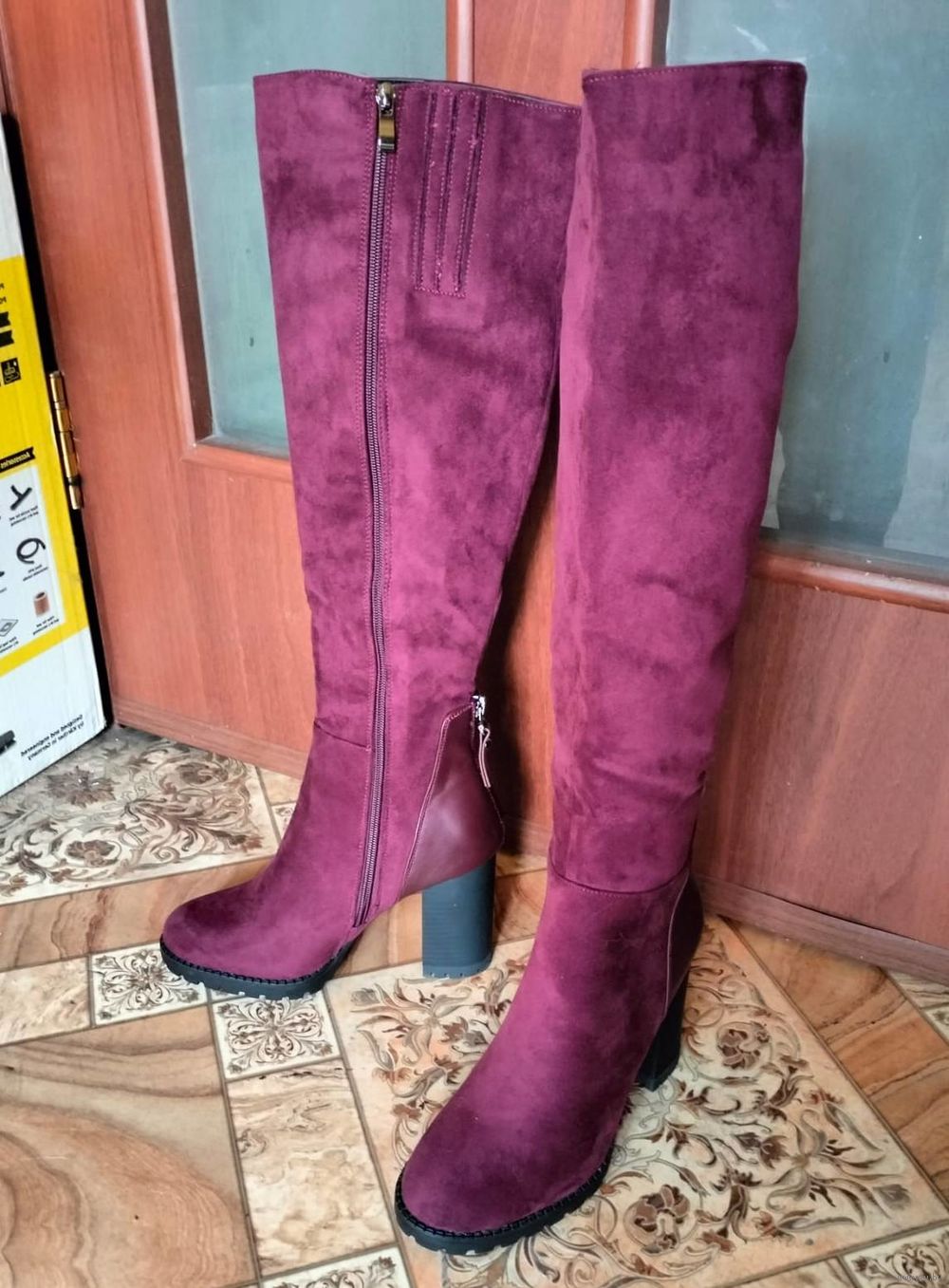 Женские зимние замшевые сапоги новые р.37,на молнии,с подкладкой из цигейки,цвет бордовый,каблук-9 см,высота сапог с каблуком-52 см,объём голенища-36 см,на среднюю ногу.Причина продажи-не подошел размер.Территориально ул.Комарова,на смс не отвечаю,все вопросы только по телефону.