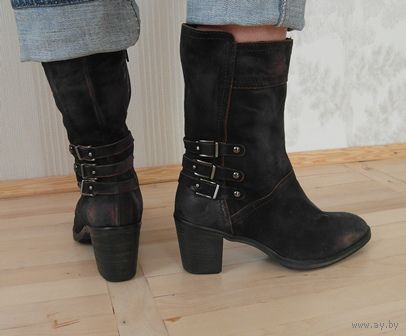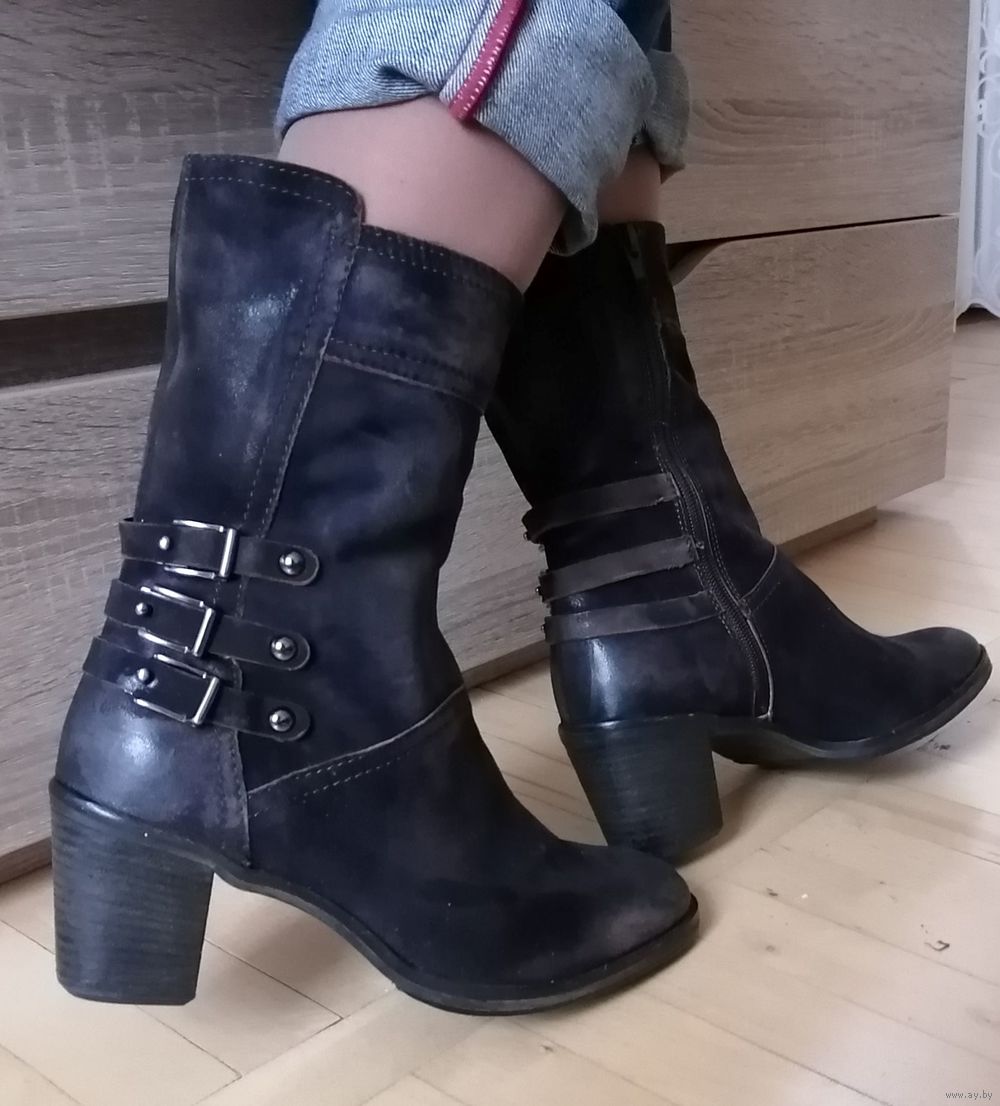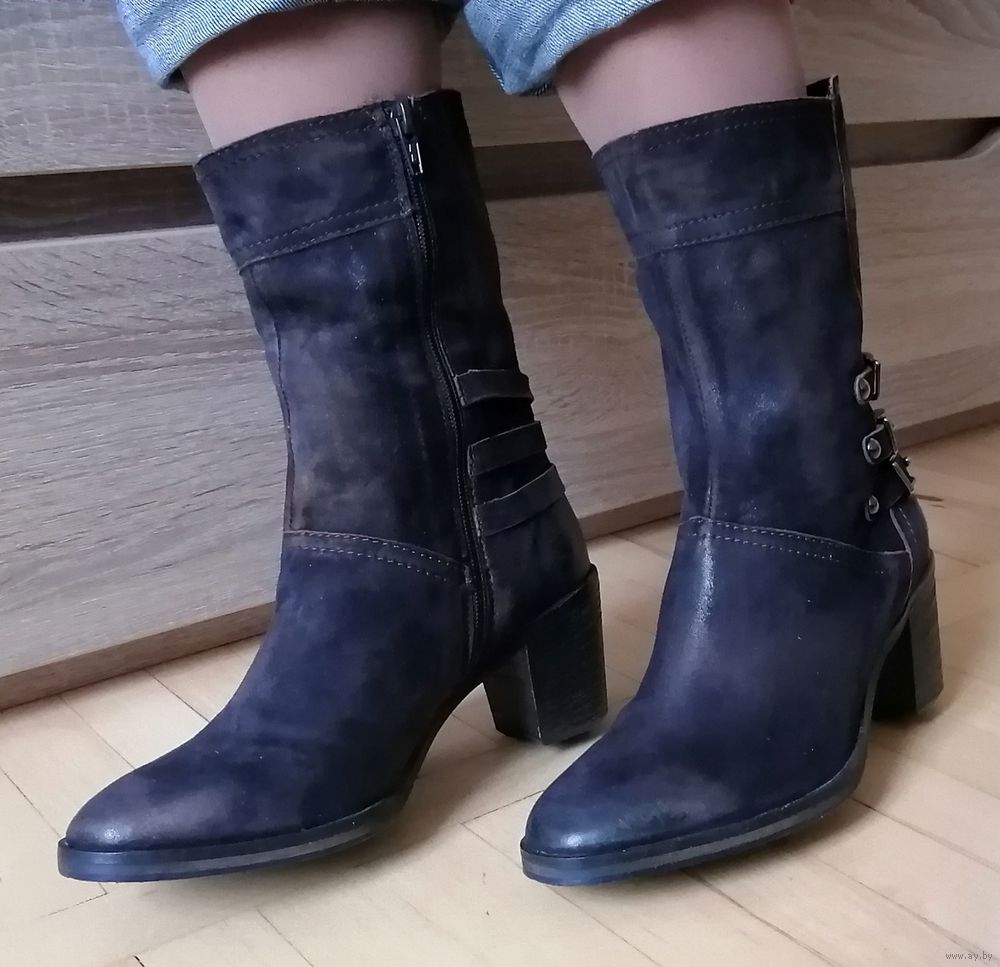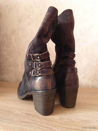 Сапожки стильные, замша, внутри кожа на р-р 37, Италия. Нежнейшая кожа внутри, снаружи замша: больше синеватая с переходом в кирпичного цвета подпалины.