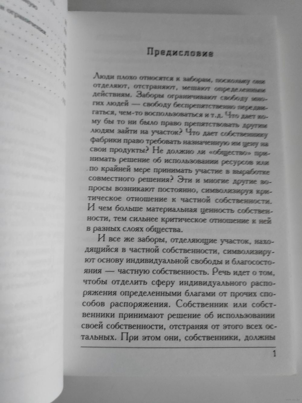В популярной форме автор рассказывает о значении частной собственности для экономического развития и ее роли в обществе, анализирует последствия государственного вмешательства в отношения собственности. Отдельная глава посвящена институциональной защите прав собственности. Рассматриваются проблемы государственной собственности и интеллектуальной собственности.