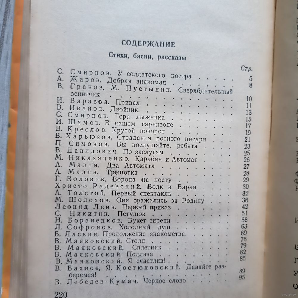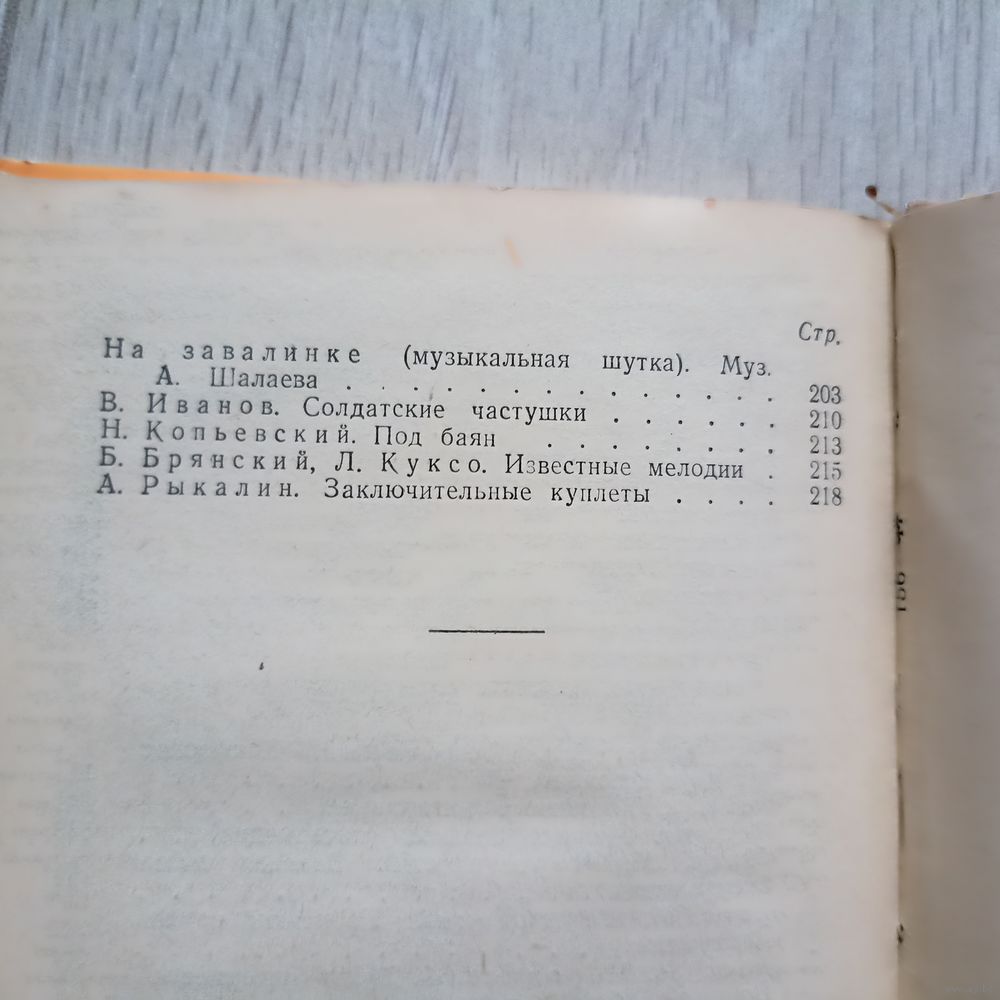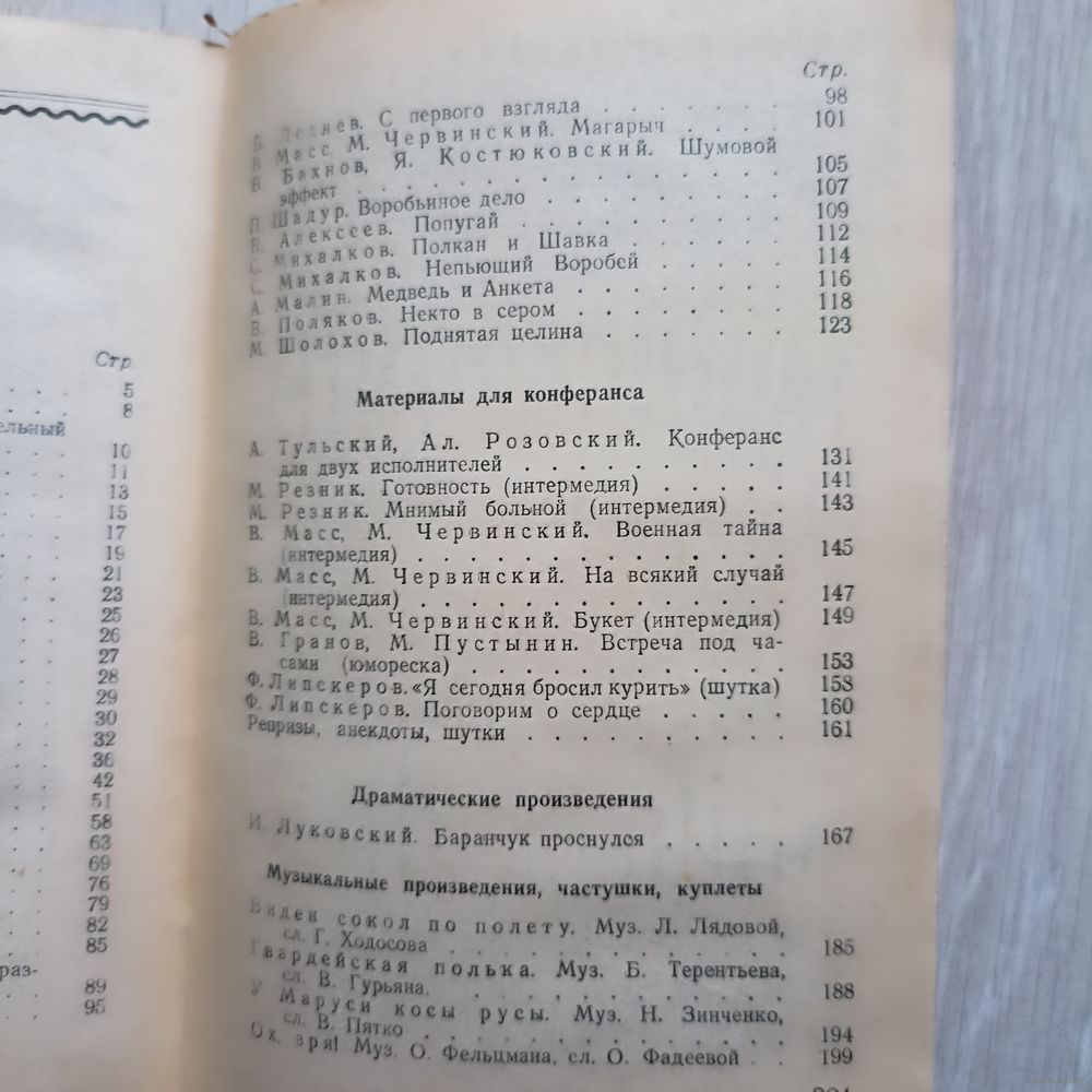 В сборнике представлены стихи, рассказы, интермедии, сценки, пьесы известных советских авторов: Вл. Дыховичного, М.Слободского, В.Масса, М. Червинского, В. Бахнова, Л.Ленча и др. Ноты и слова популярных песен.