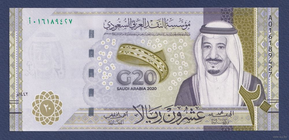 Саудовская Аравия, 20 риалов 2020 г, P-W44 (AO, памятная - Саммит G20 в Эр-Рияде), UNC