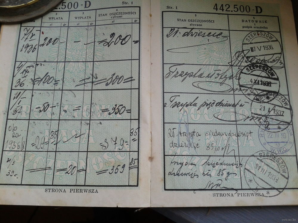 Сберкнижка, 1939 год, вклад.