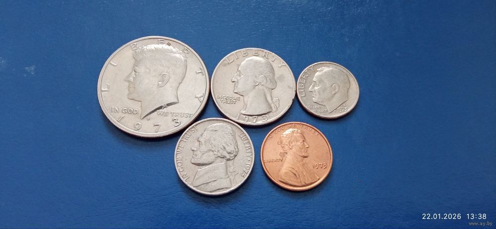 Сборка 50,25,10,5 и 1 центы США 1973 год (Состояние на фото,в лоте 5 монет)