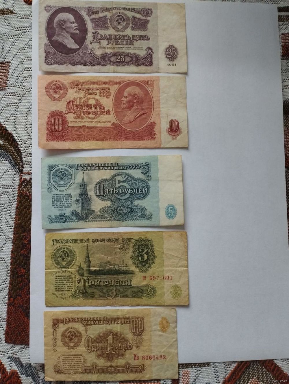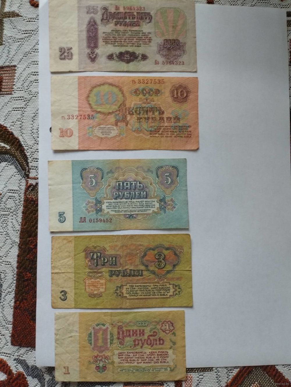 Купюры целые, без надрывов, 25 руб. серия Бз, 10 руб. - гь, 5 руб. - ЛА, 3 руб. - ГЗ, 1 руб. -Из.