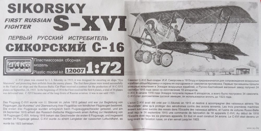 С-16 являлся одним из первых серийных самолётом Игоря Сикорского созданных в России до его эмиграции в США после революции 1917 года. Построены в небольшом количестве, они принимали участие в Первой мировой войне в качестве истребителя сопровождения тяжёлых бомбардировщиков "Илья Муромец" (так же И. Сикорского).