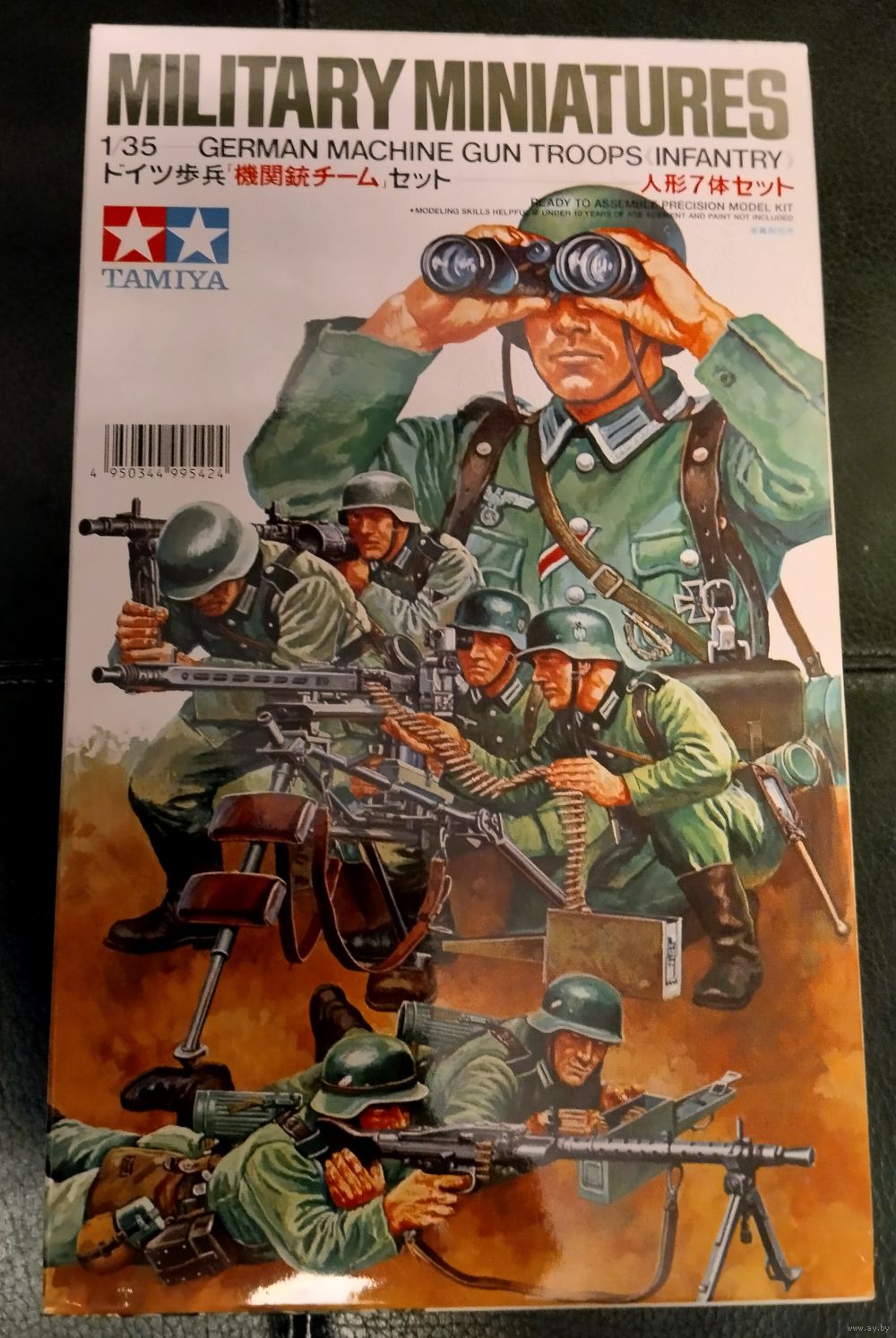 Сборная модель ВОВ Tamia 1/35 Немецкий отряд пулеметчиков 35038 . 7 фигурок и вооружене, декаль (!!!), производство японской фирмы "Тамия" №35038