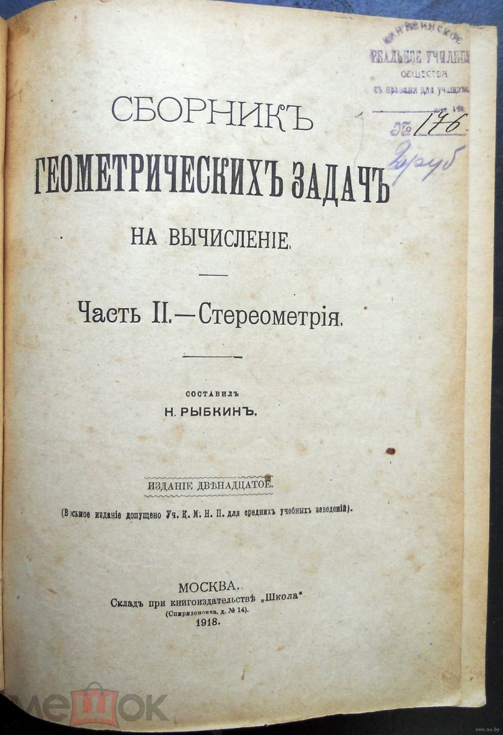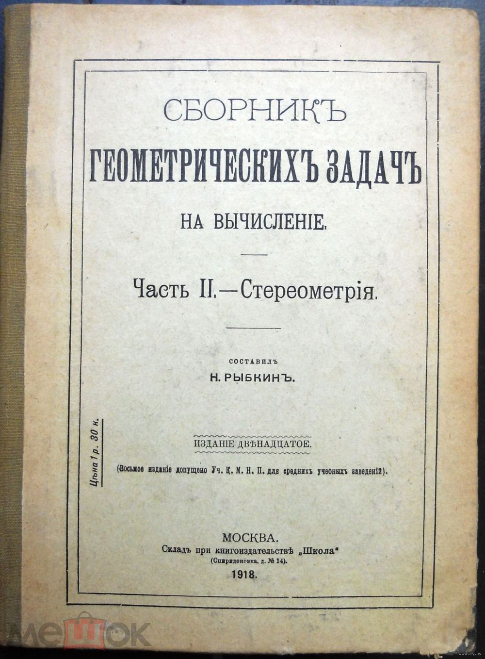 Составил Н. Рыбкин. Издание 20-е. М. Склад при книгоиздательстве `Школа` 1918г. 4 + 100 с. 21,5Х 16 см.
