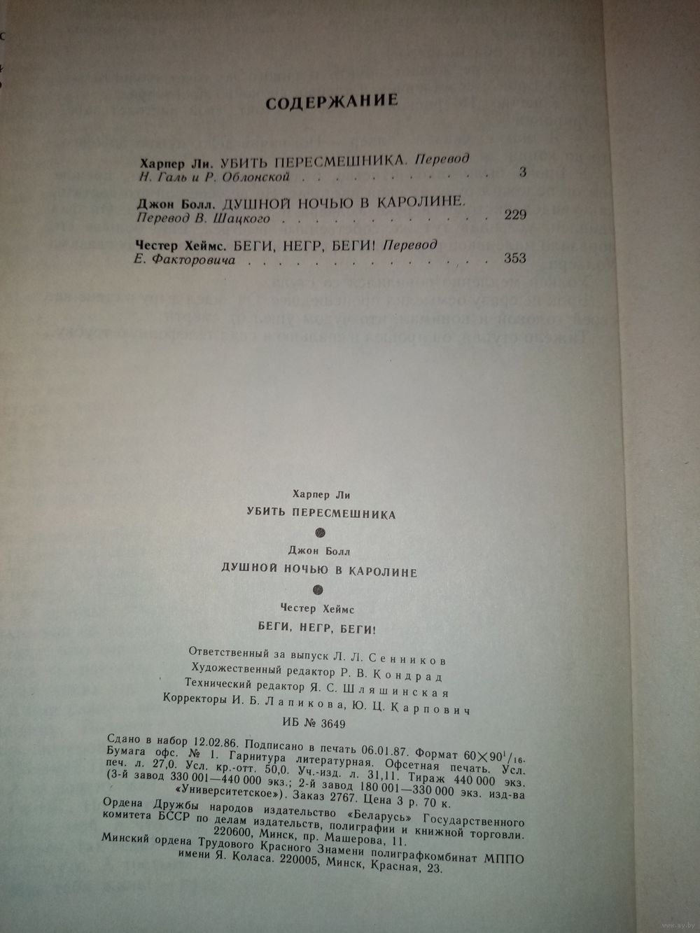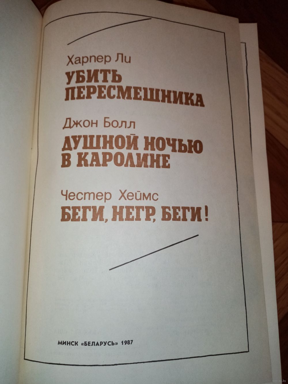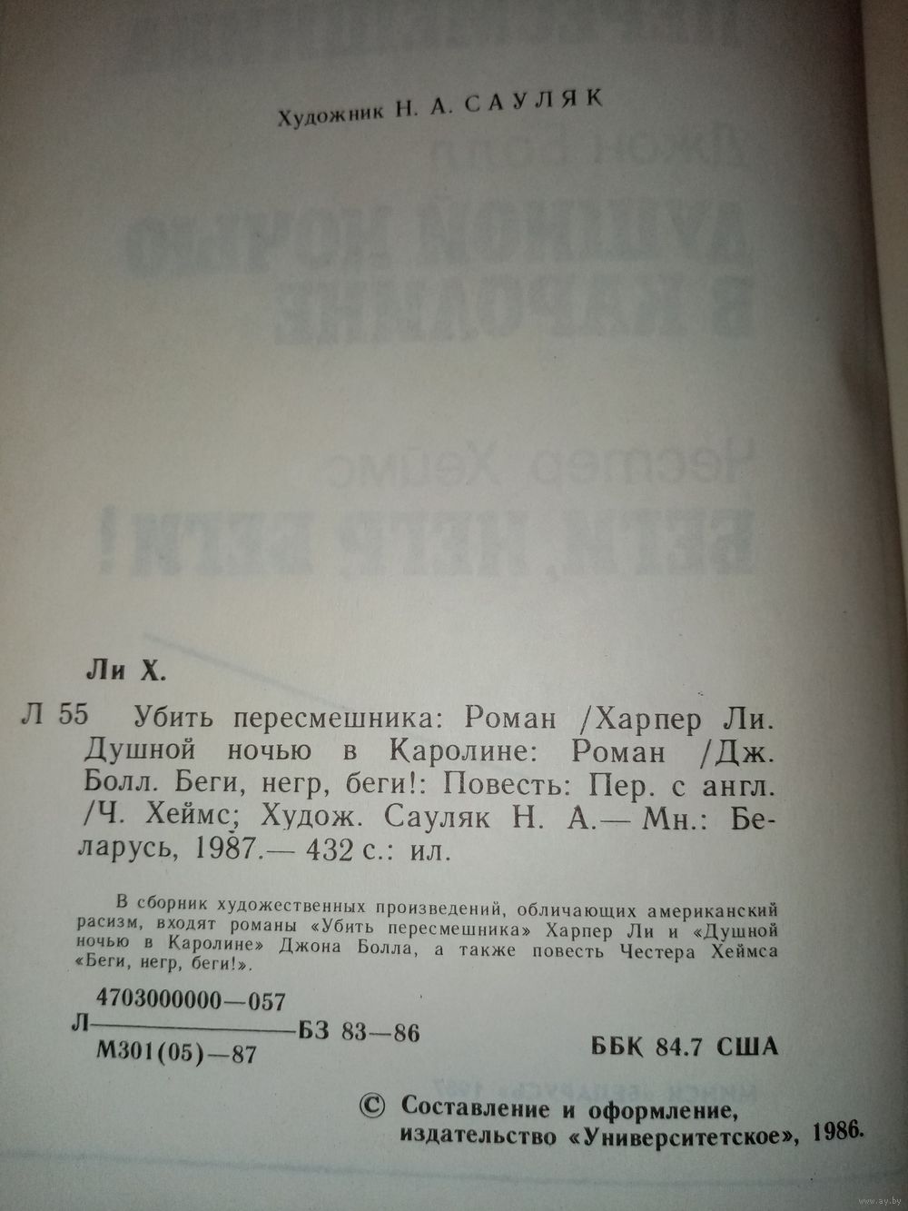 В сборник художественных произведений, обличающих американский расизм, входят романы "Убить пересмешника" Харпер Ли и "Душной ночью в Каролине" Джона Бола, а также повесть Честера Хеймса "Беги, негр, беги!".