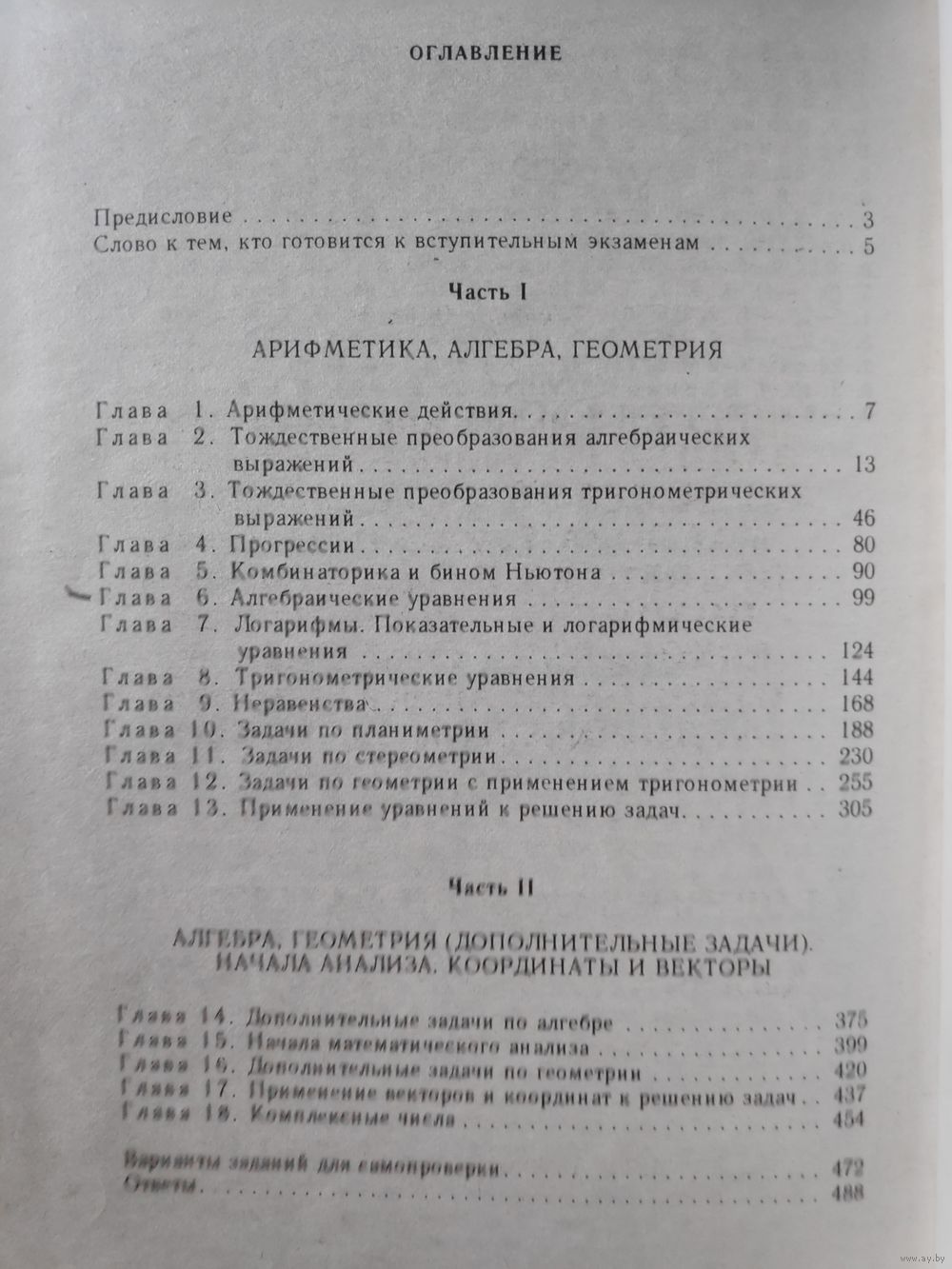 Сборник составлен в соответствии с программой по математике для поступающих в вузы. Он состоит из двух частей: «Арифметика, алгебра, геометрия» (часть I) и «Алгебра, геометрия (дополнительные задачи). Начала анализа. Координаты и векторы» (часть II). Все задачи части I разбиты на три группы по уровню их сложности. В сборнике приведены сведения справочного характера и даны примеры решения задач.