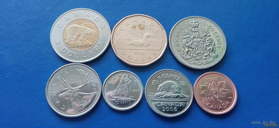 Сборный лот монет 2 доллара,1 доллар,50,25,10,5 и 1 центы Канады (Состояние на фото 1973 - 2007 года)