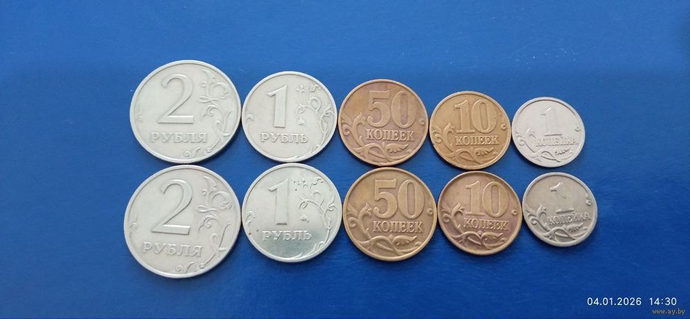 Сборный лот 2 рубля,1 рубль,50 копеек,10 копеек и 1 копейка ММД и СПМД Россия 1999 год (Состояние на фото)В лоте 10 монет