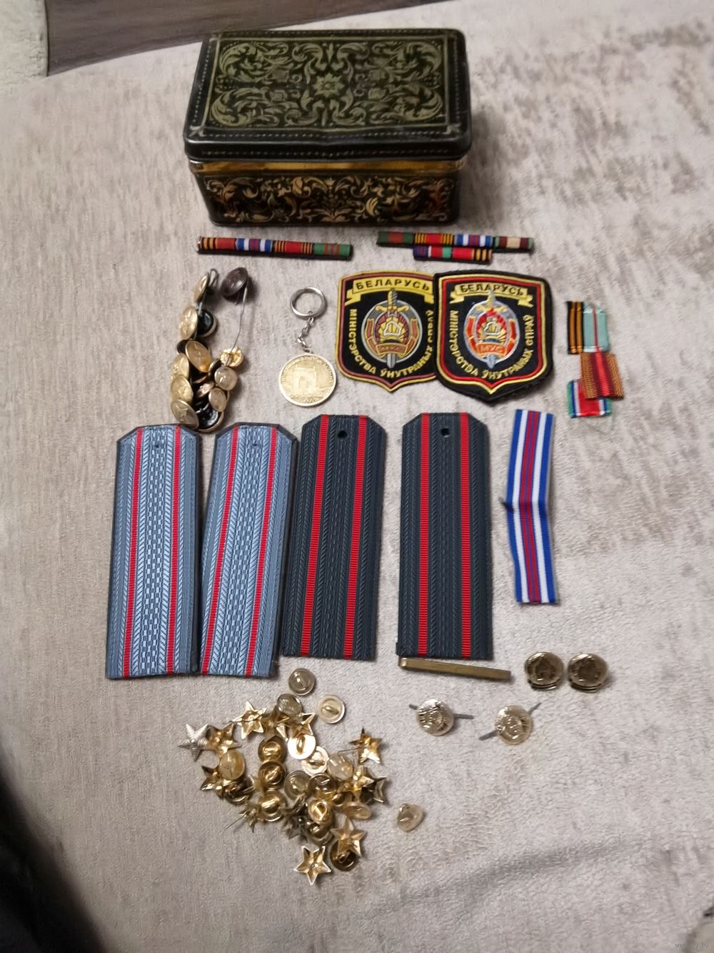 Сборный лот, пагоны, пуговицы, брелок, металлическая коробка, часть лота ссср