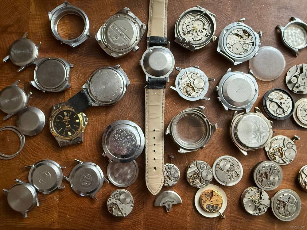 Сборный лот часов,корпусов,механизмов и. т. д. с 1 рубля без МЦ. Работоспособность не известна. На запчасти или восстановление. Покупатель выходит на связь и оплачивает лот в течение трёх дней с момента завершения торгов. Доставка осуществляется за счёт покупателя согласно тарифам Белпочты, Европочты.