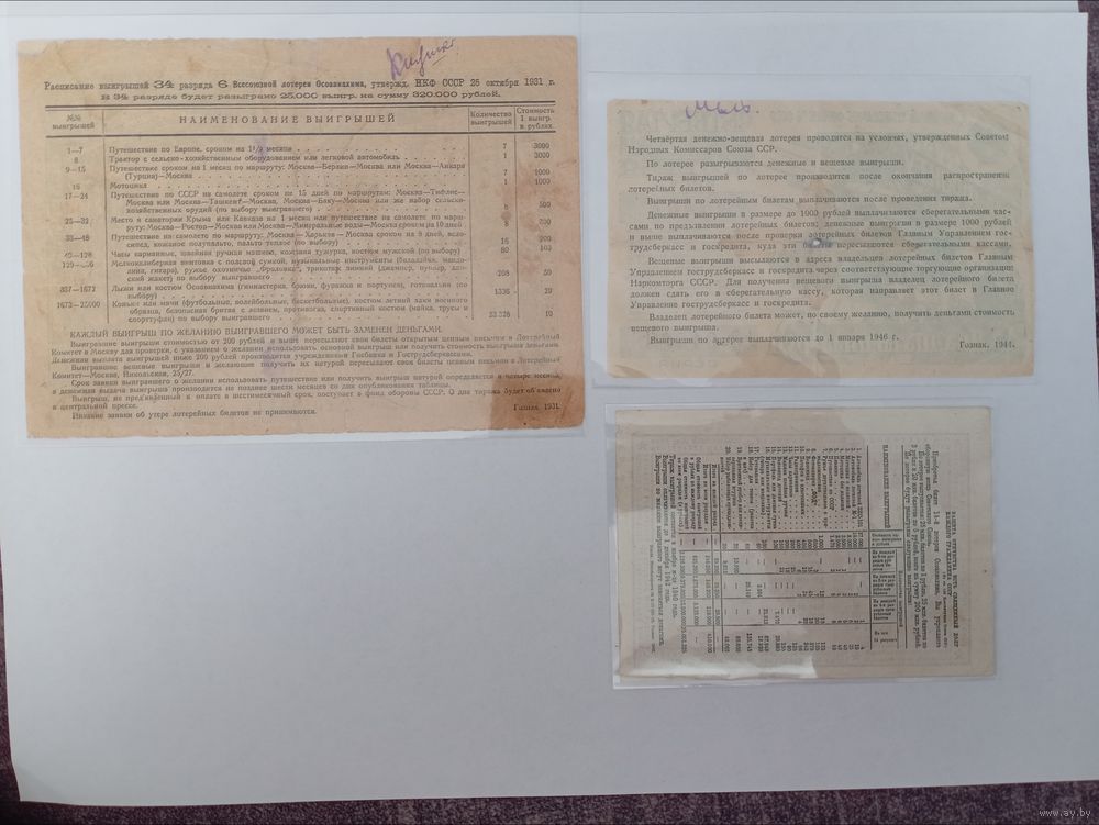 Сборный лот лотерейных билетов ссср 1930 х годов